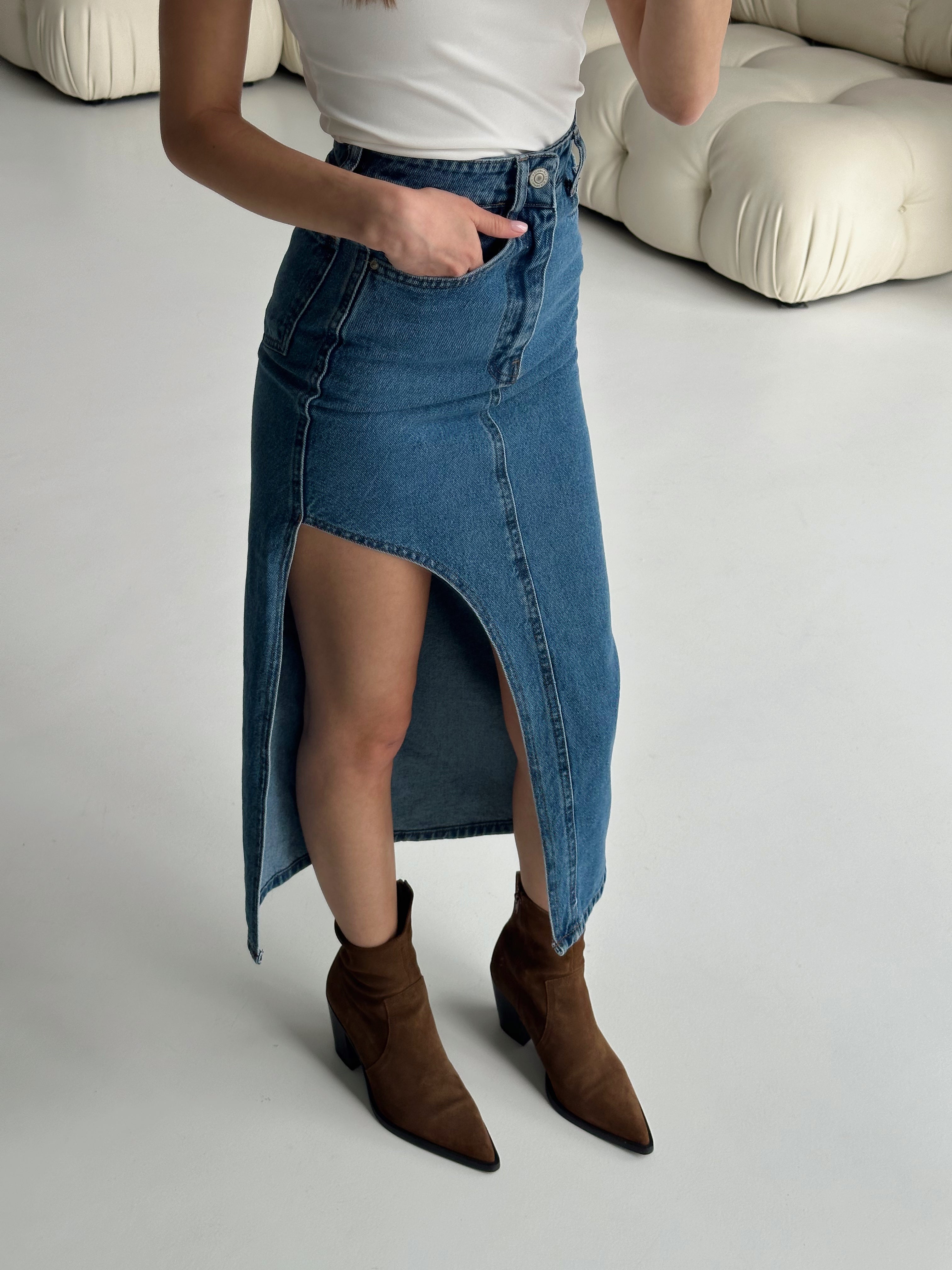 Asymetryczna spódnica jeansowa – stylowy i nowoczesny element garderoby, który doda Twojej stylizacji dynamicznej energii i wyrazistego charakteru. Idealna do swobodnych stylizacji, miejskich spacerów czy nieformalnych spotkań, spódnica ta podkreśli Twoją indywidualność i poczucie stylu.