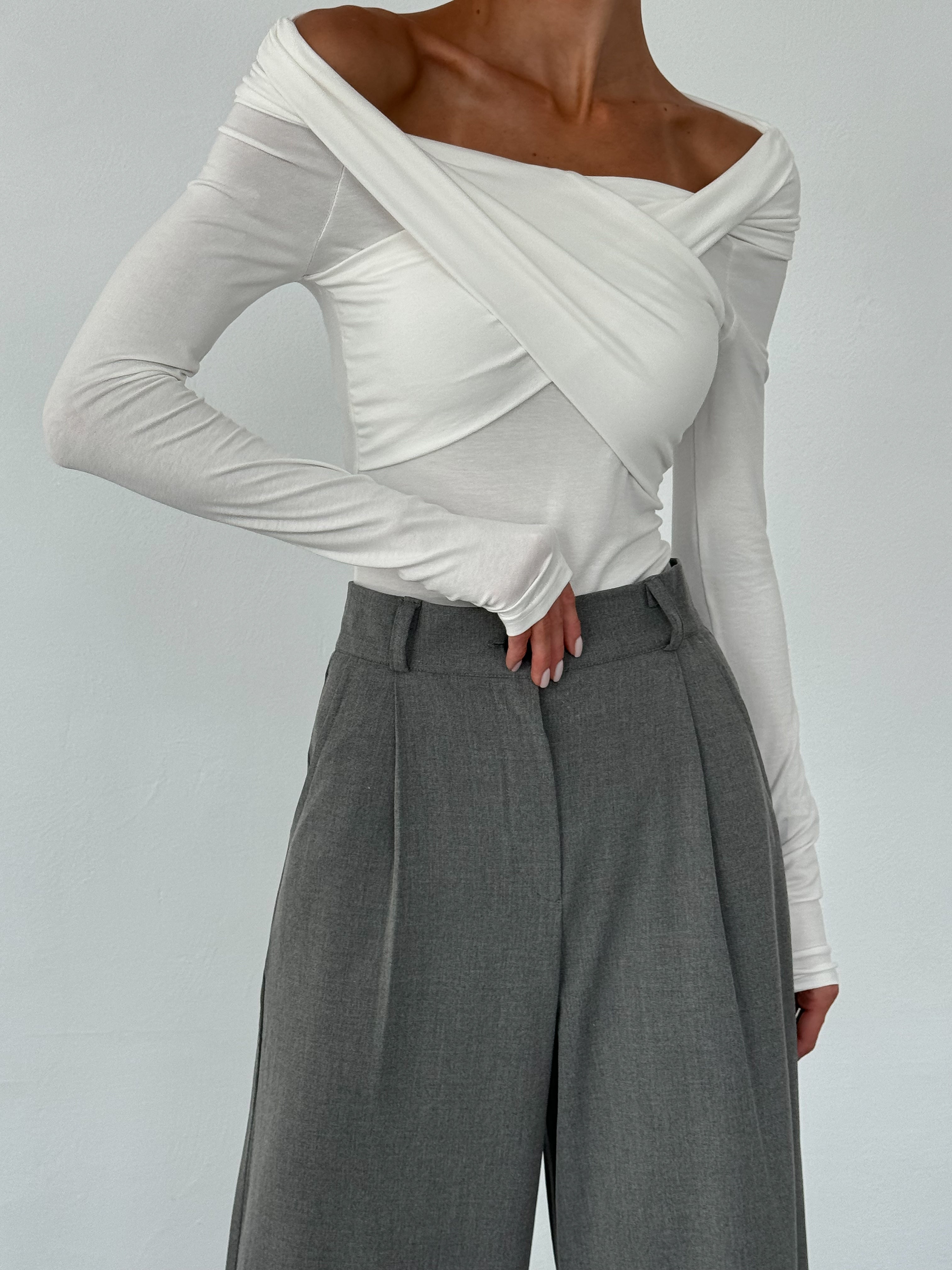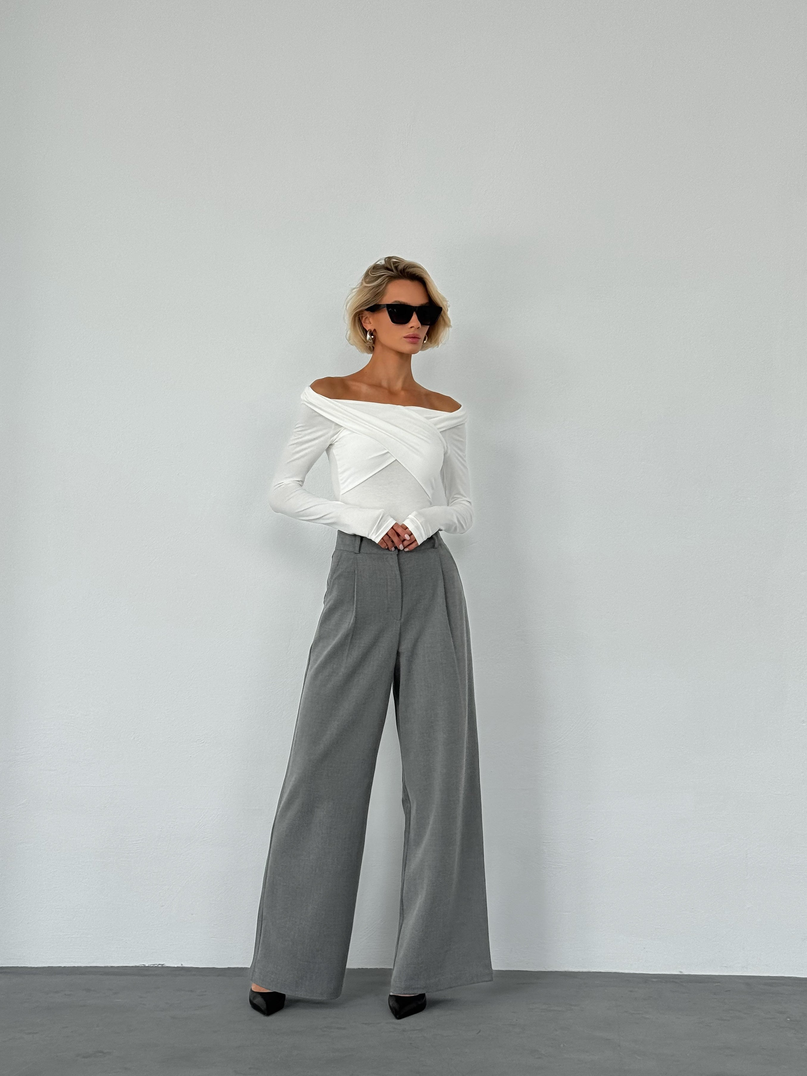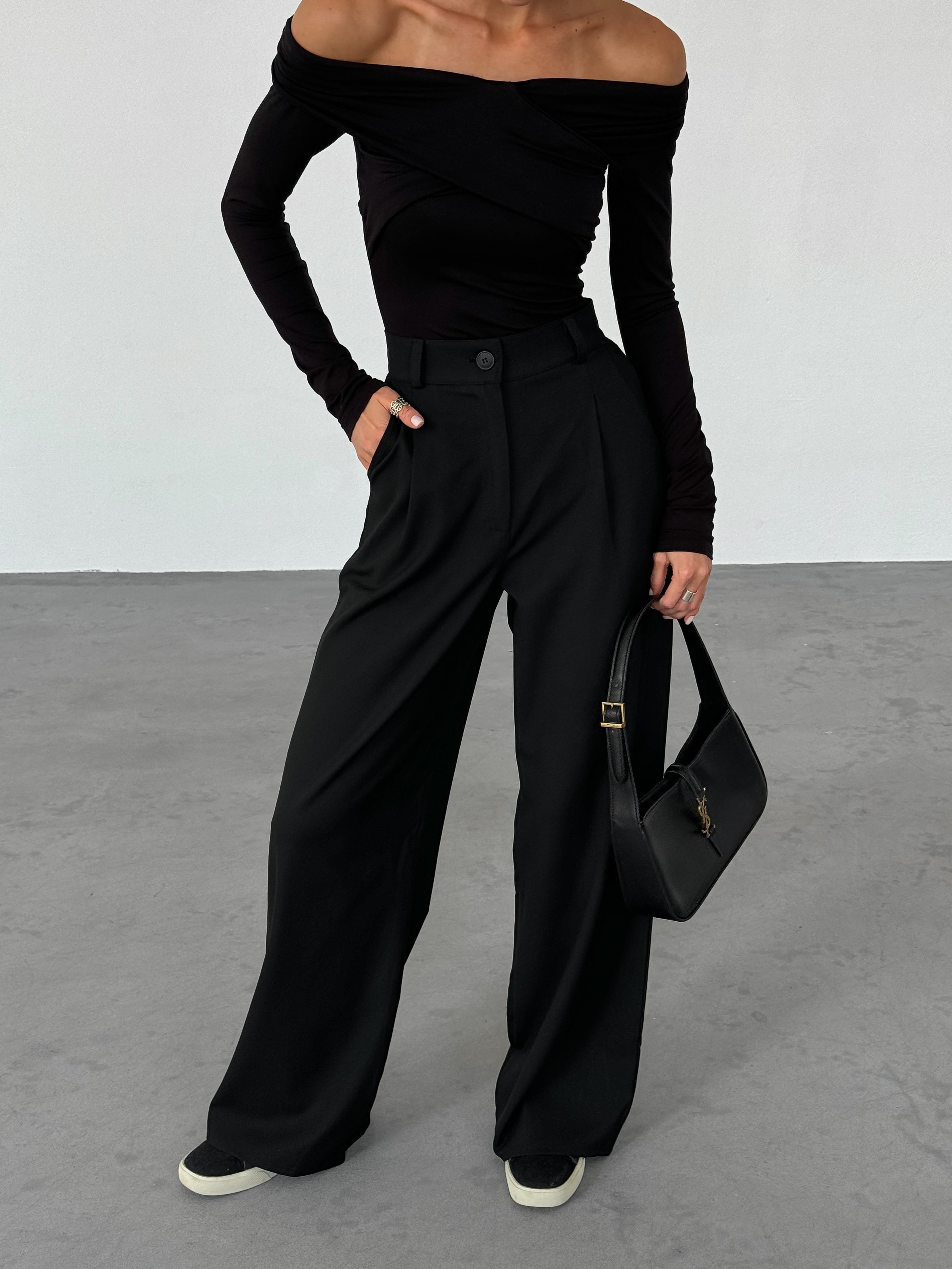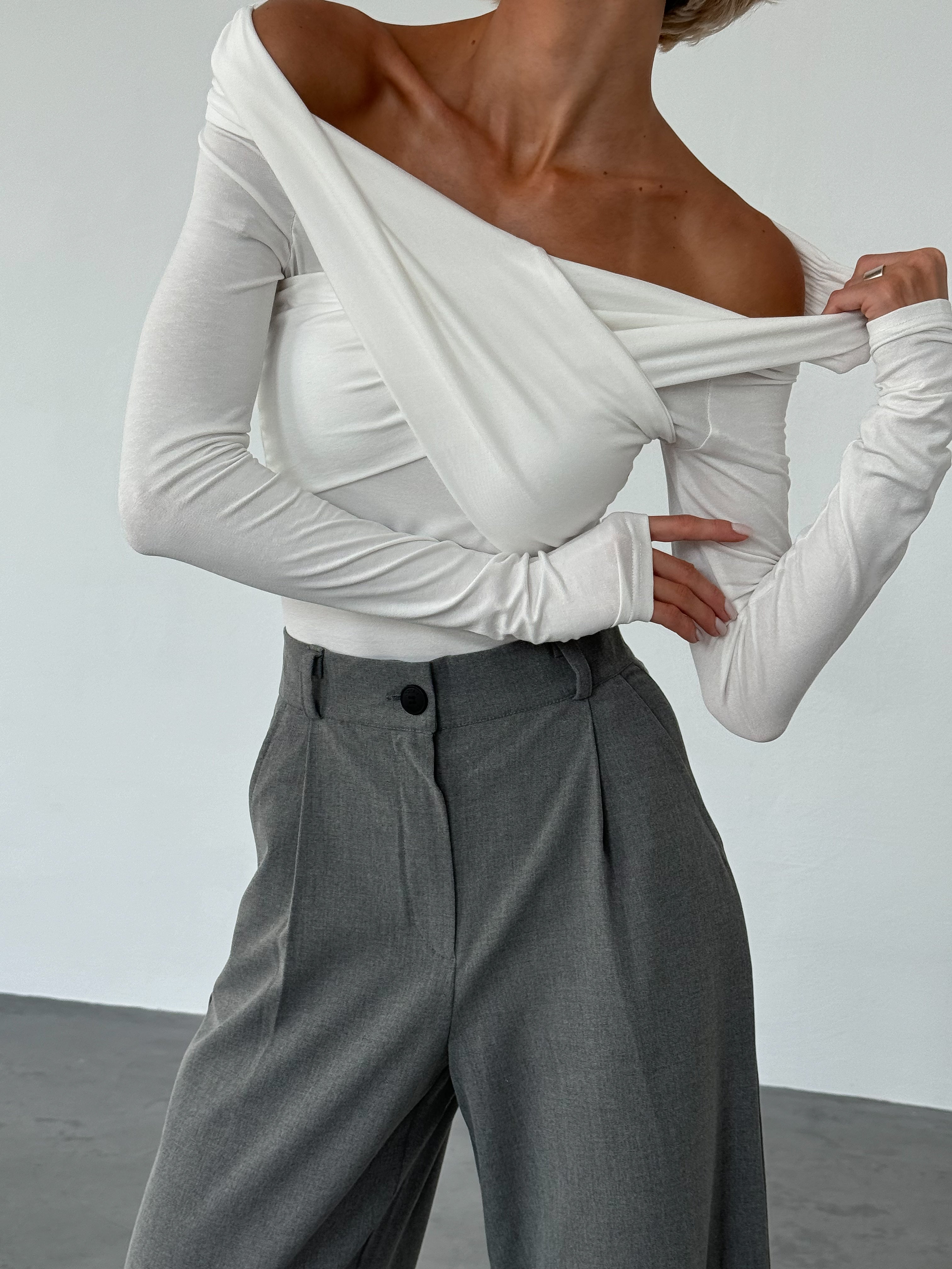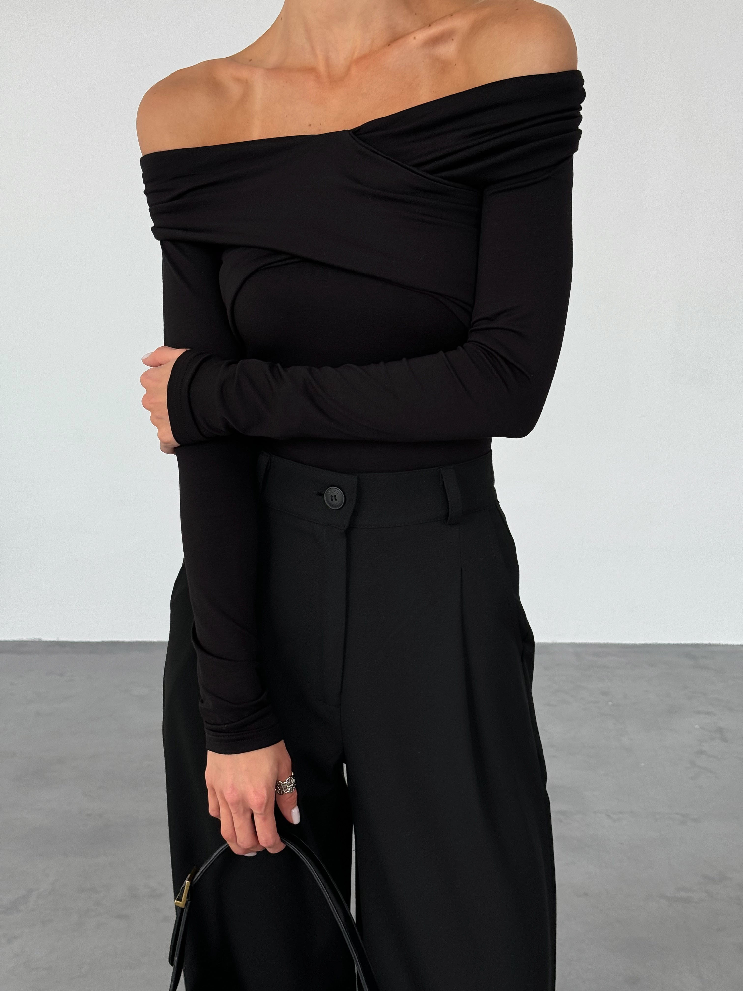 Podstawowy body z odkrytymi ramionami – wszechstronny i kobiecy element łączący wygodę i styl. Wykonany z miękkiej, przyjemnej w dotyku dzianiny, idealnie dopasowuje się do ciała, podkreślając sylwetkę i dodając elegancji każdej stylizacji.