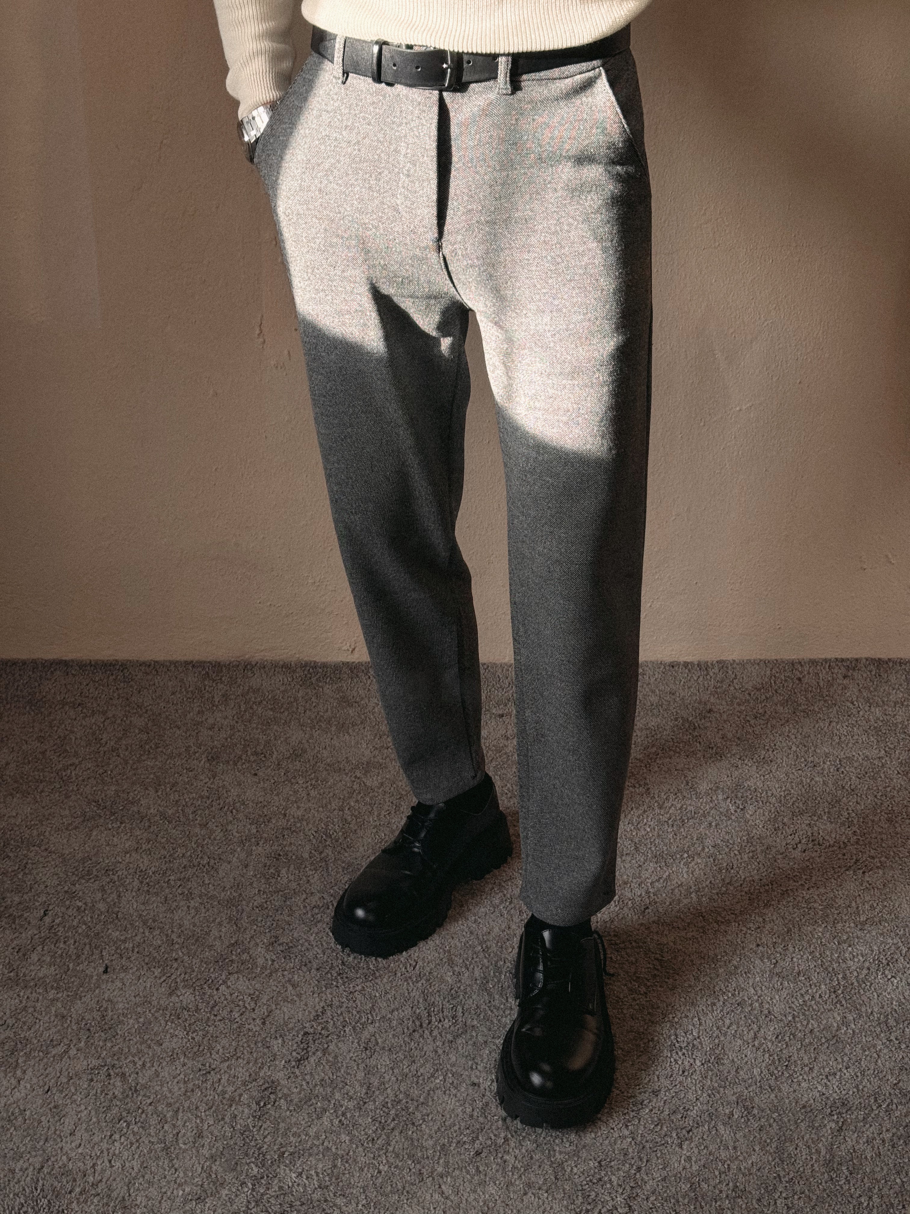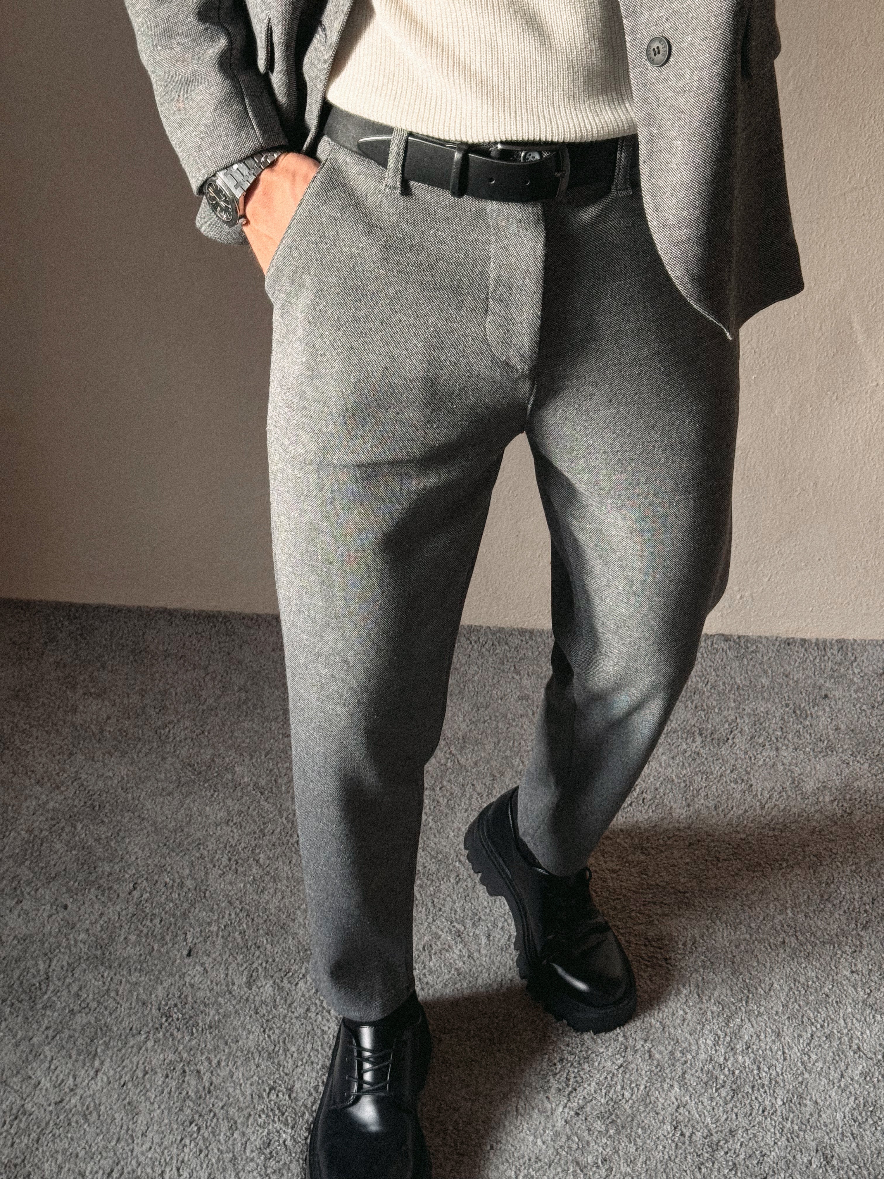 Klasyczne spodnie tweedowe z ciepłego materiału — stylowy i praktyczny wybór na zimną porę roku.