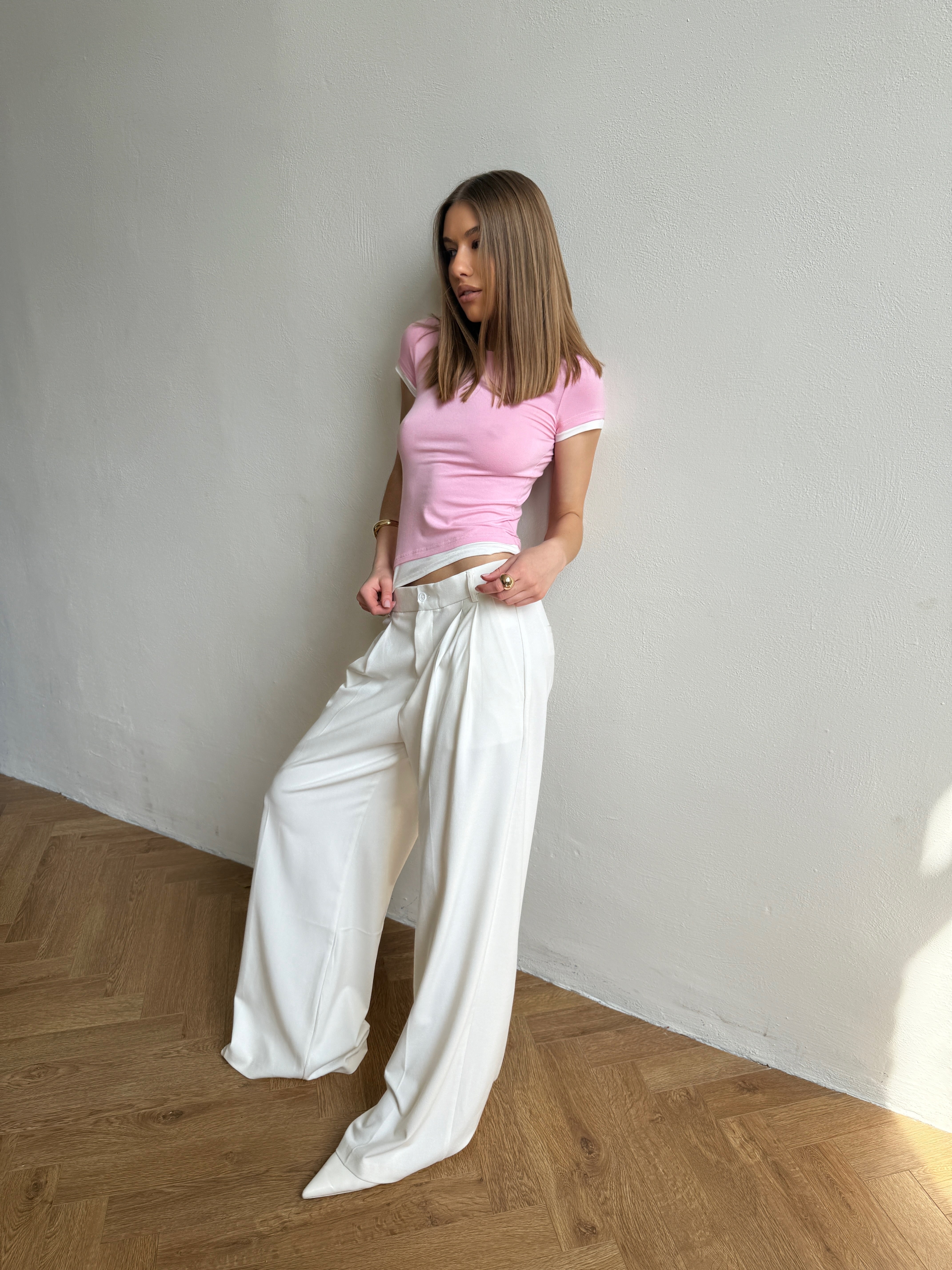Damski T-shirt „Double” to nowoczesny i uniwersalny element garderoby, który wzbogaci Twoją codzienną garderobę. Idealny do noszenia samodzielnie lub jako warstwa wierzchnia, łączy wygodę z naturalnym stylem.