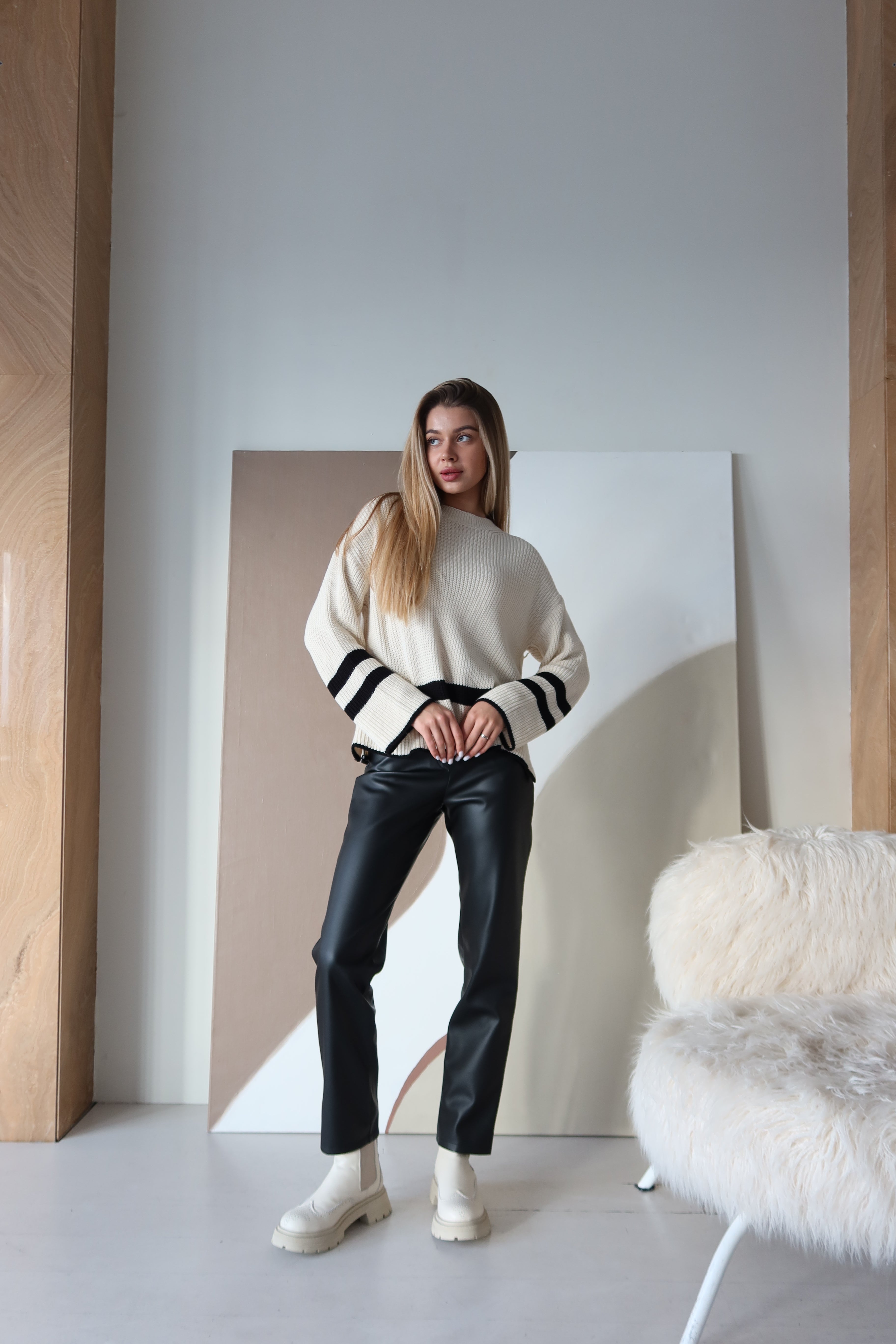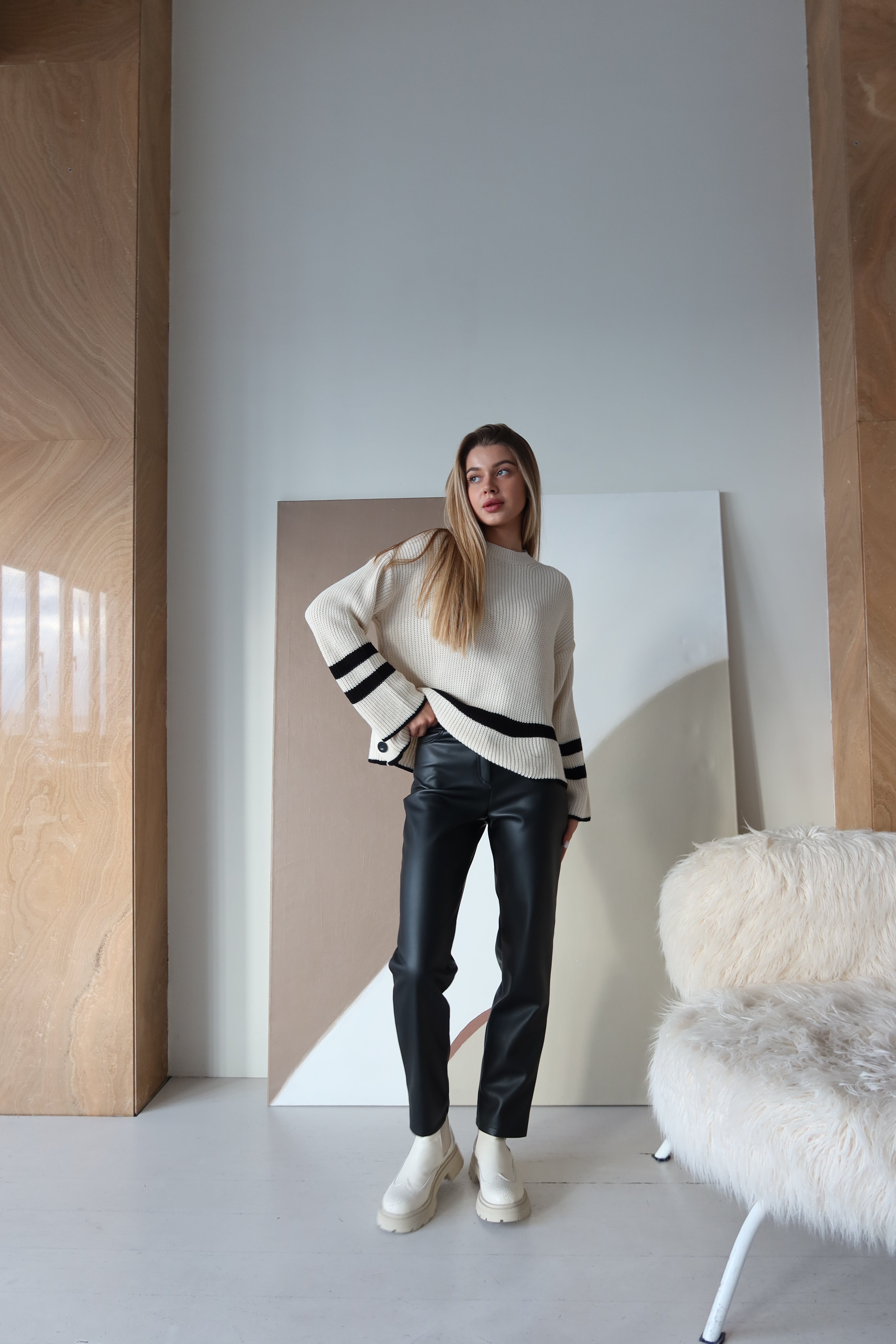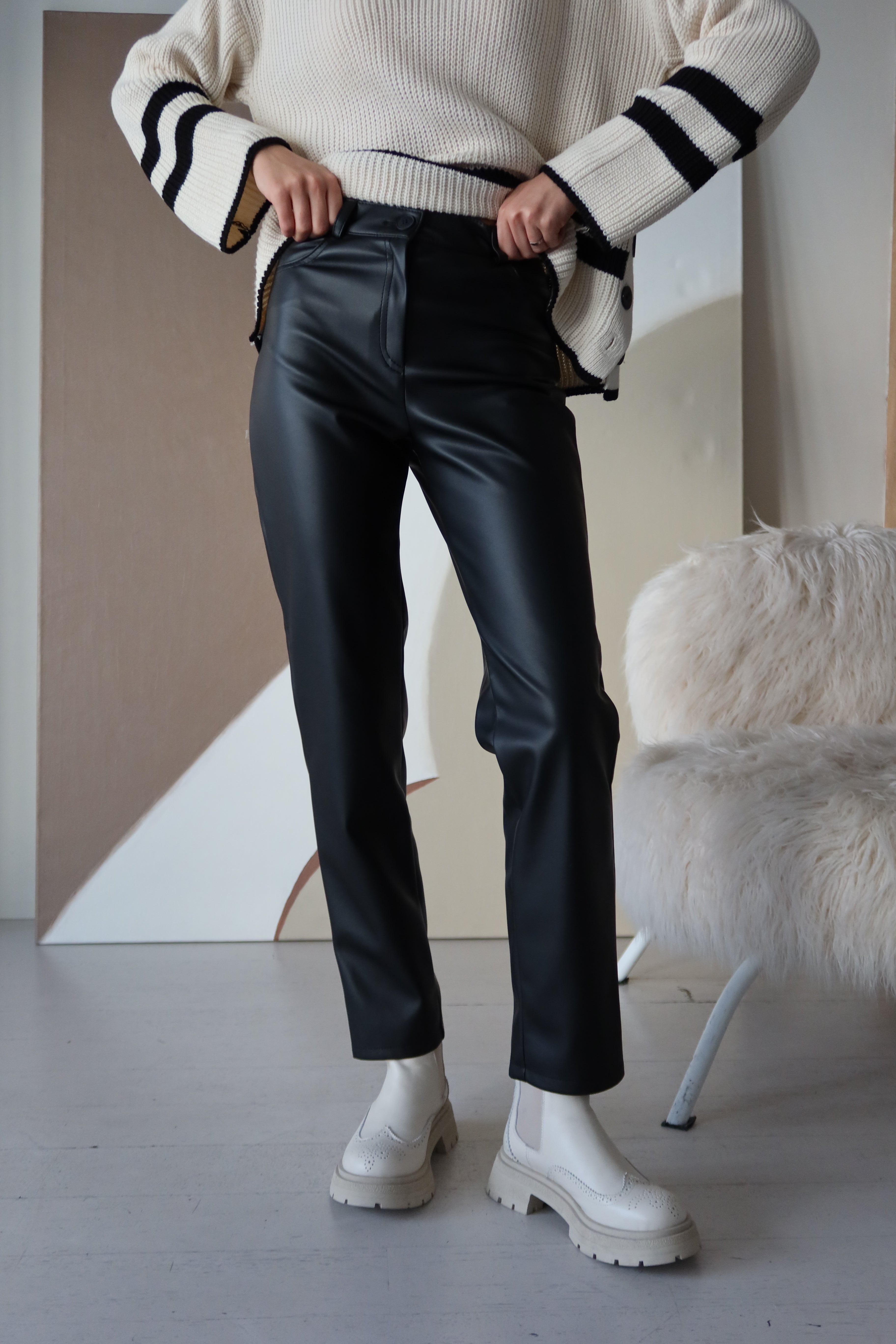 Ocieplane spodnie ze sztucznej skóry to praktyczny i stylowy wybór na chłodniejsze pory roku. Prosty krój i wysoki stan idealnie podkreślają sylwetkę, tworząc elegancką sylwetkę. Dzięki wysokiej jakości sztucznej skórze i ocieplanej podszewce spodnie zapewniają komfort i ciepło, zachowując jednocześnie modny wygląd.