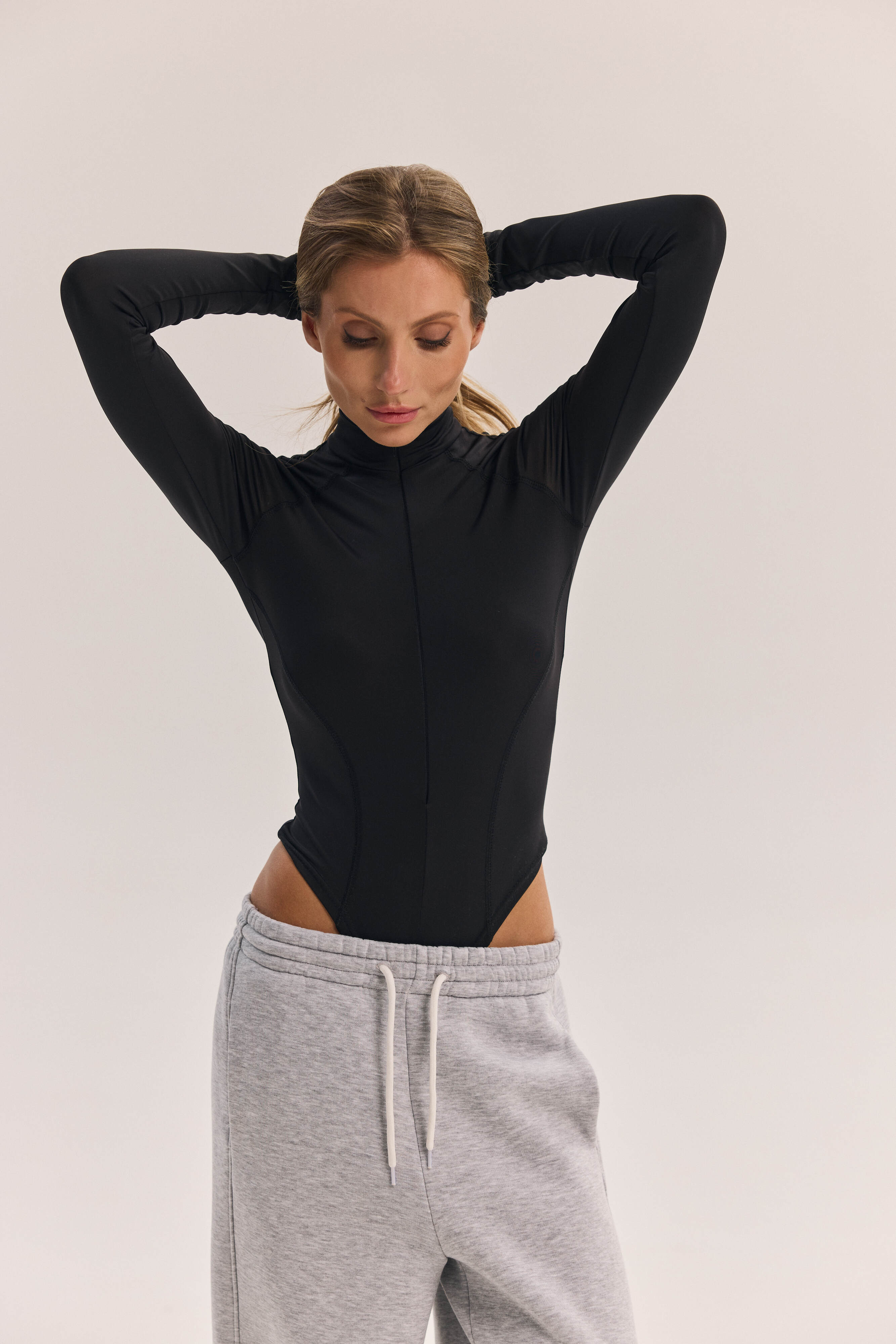Uniwersalne body – stylowy i praktyczny wybór do każdej garderoby. Zamek błyskawiczny z przodu pozwala na regulację głębokości dekoltu, a gęsty elastyczny materiał podkreśla sylwetkę, zapewniając komfort i swobodę ruchów.