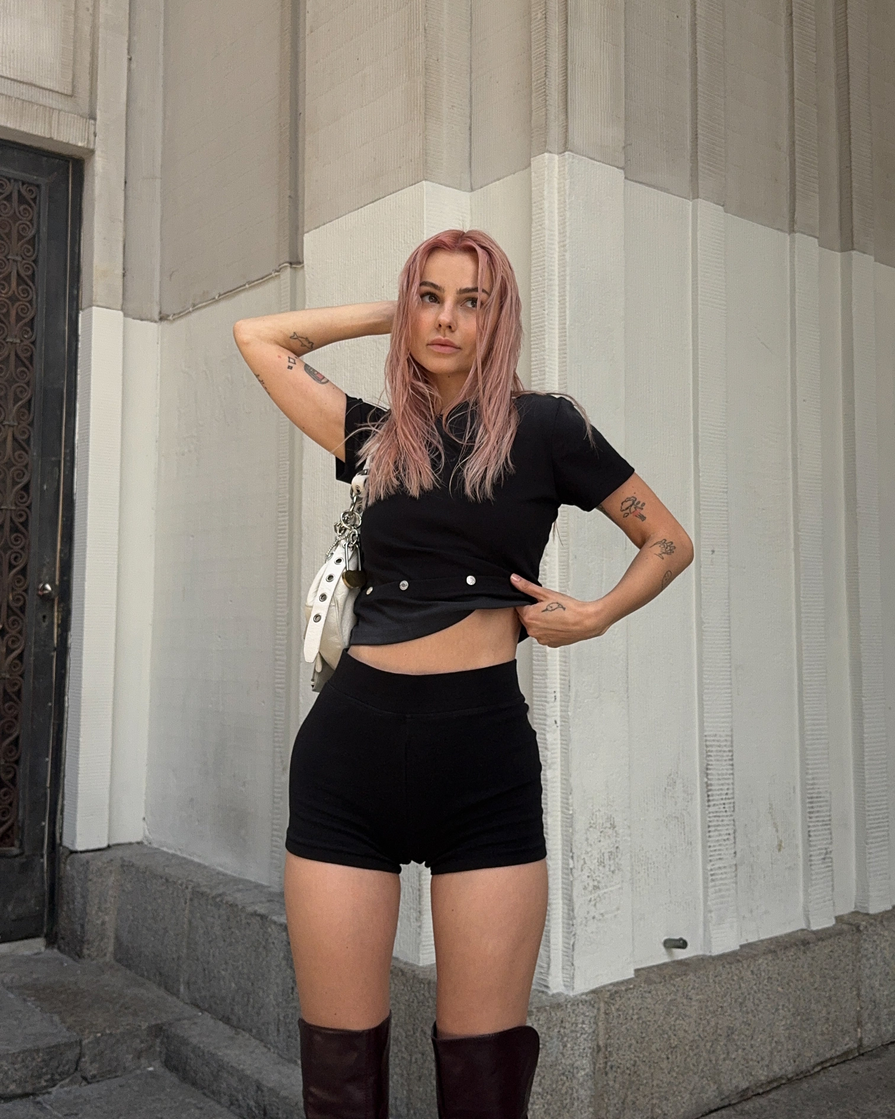 Dopasowany T-shirt to podstawowy i stylowy element garderoby, który podkreśla sylwetkę i tworzy schludny, nowoczesny look. Idealnie pasuje do jeansów, szortów lub spódnic, dodając elegancji i wygody codziennym stylizacjom.