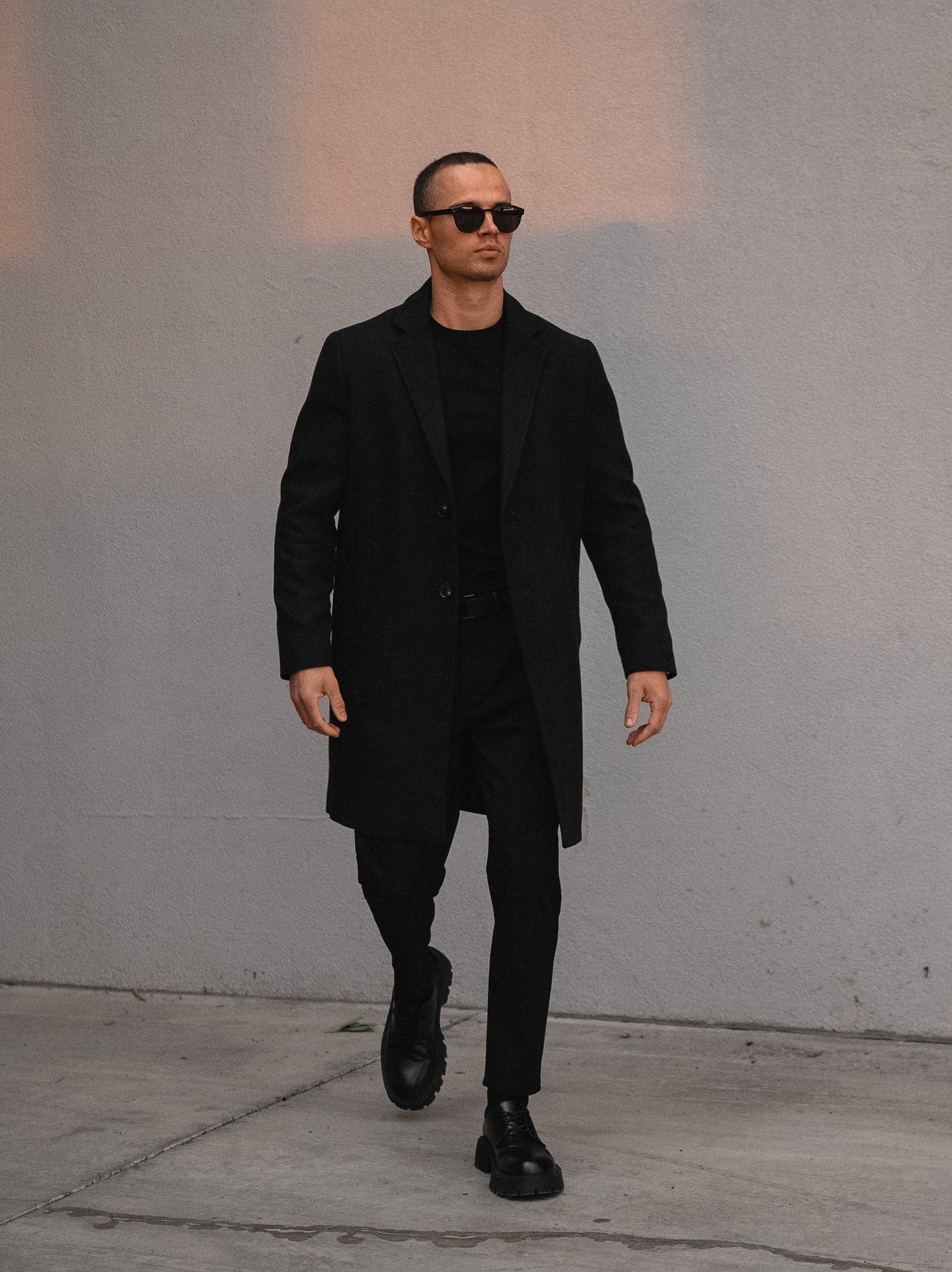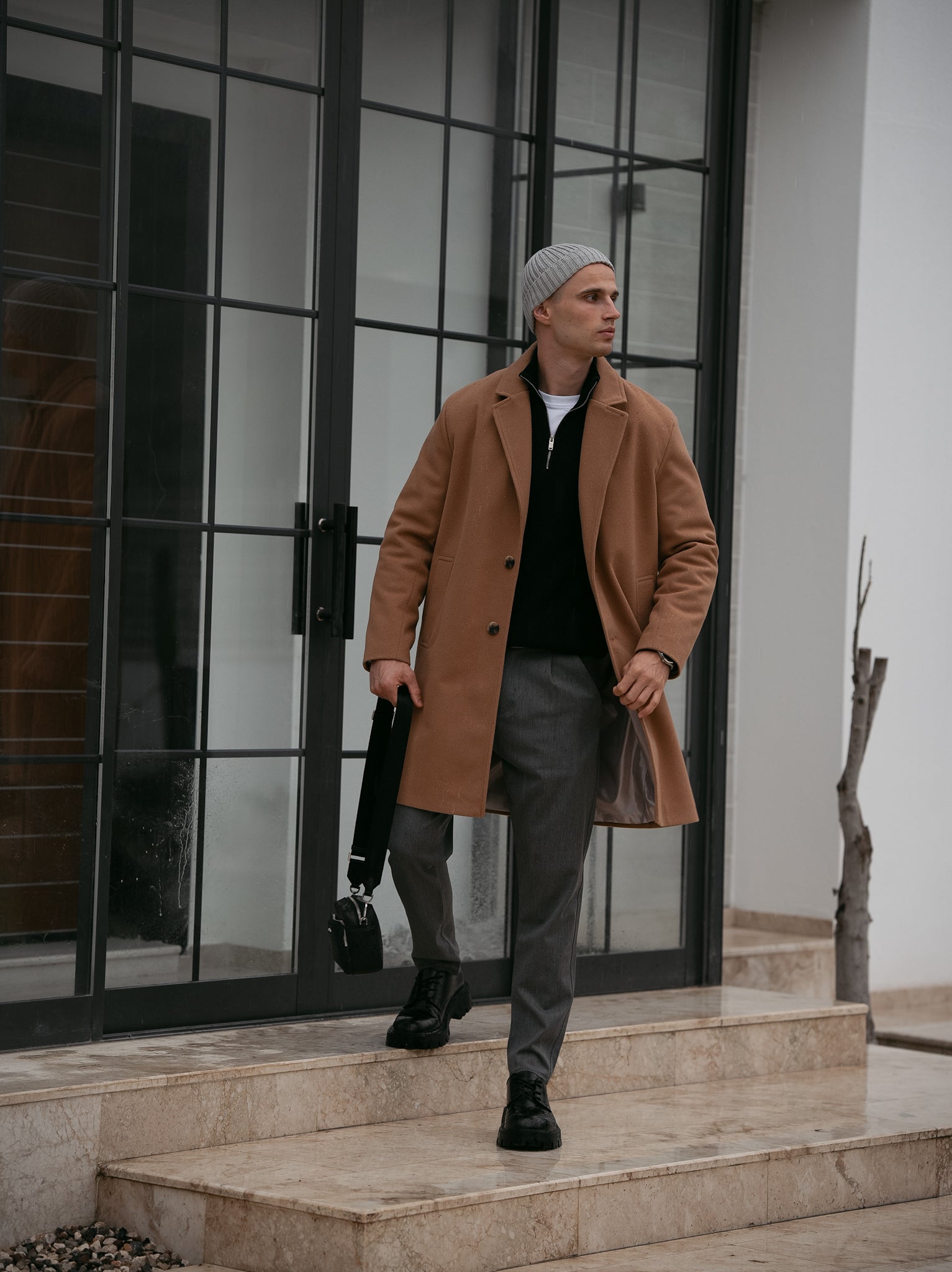 Uniwersalna propozycja okrycia wierzchniego na co dzień: jednorzędowy płaszcz z kaszmiru.