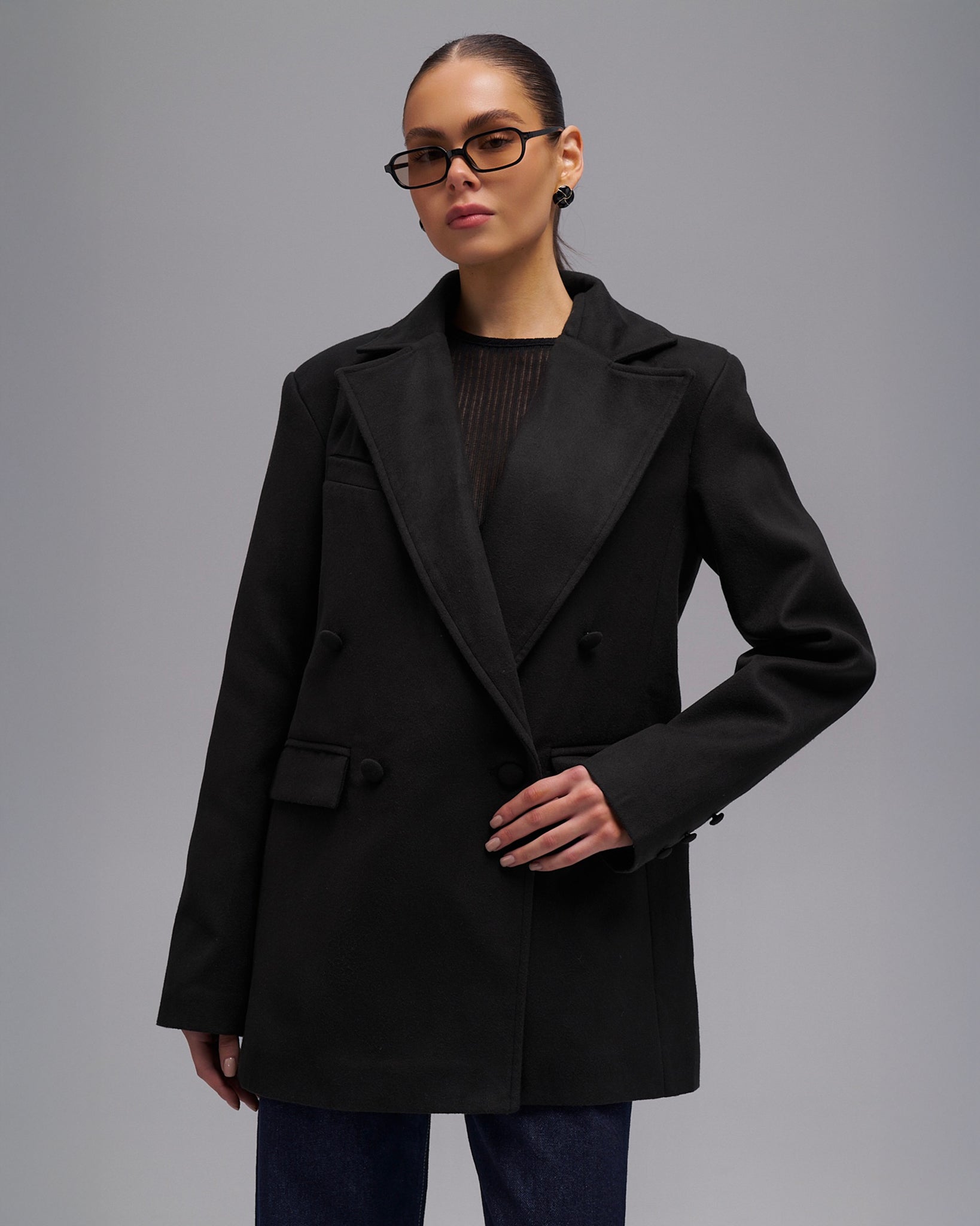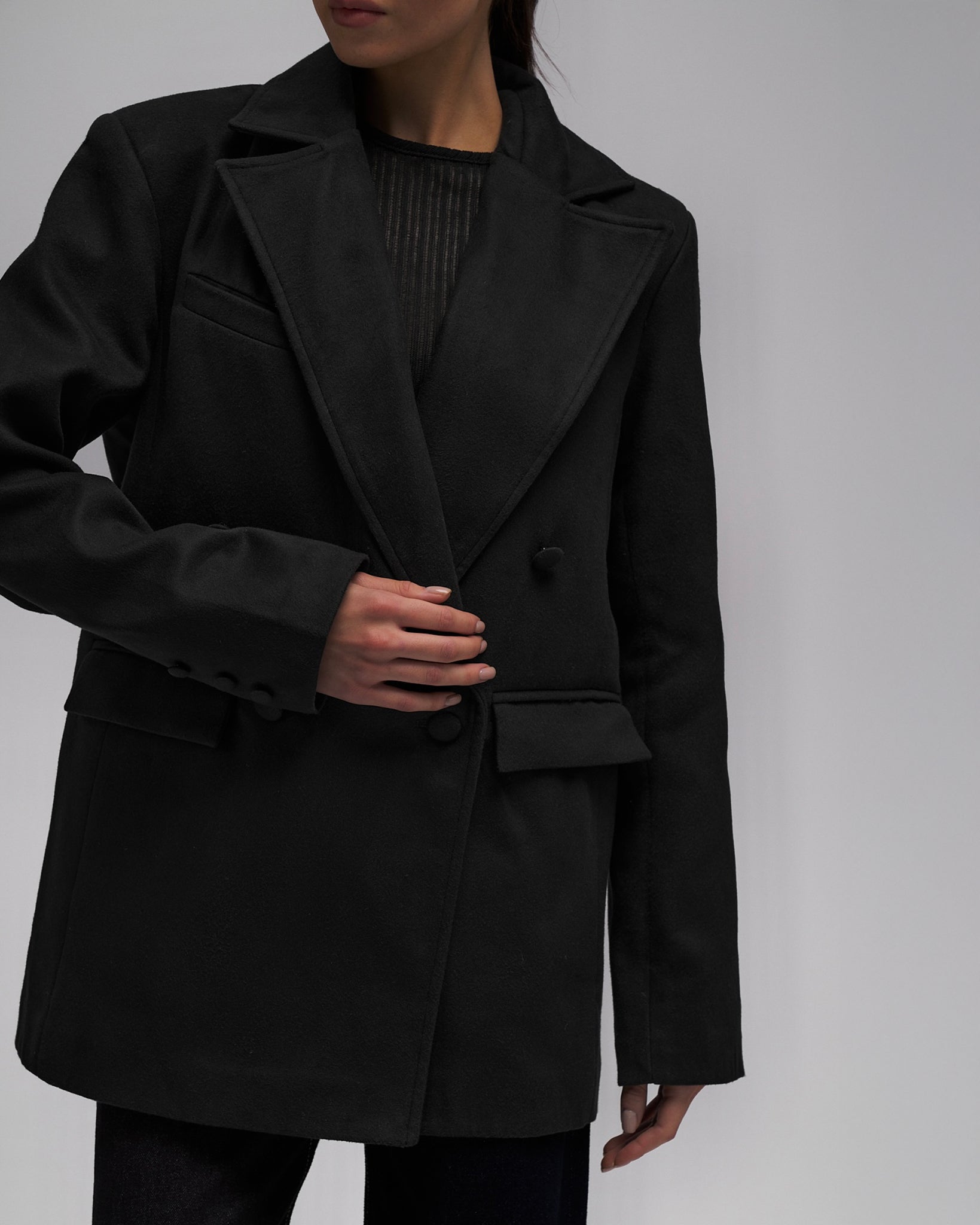 Marynarka-płaszcz Mary to prosty, stylowy element garderoby, który łączy klasyczną elegancję z nowoczesnym komfortem. Skrócony krój i dwurzędowy krój dodają mu szykowności, a luźny krój tworzy swobodny, modny look. Płaszcz, wykończony podszewką dla dodatkowego komfortu, jest przyjemny w dotyku i łatwy w noszeniu.