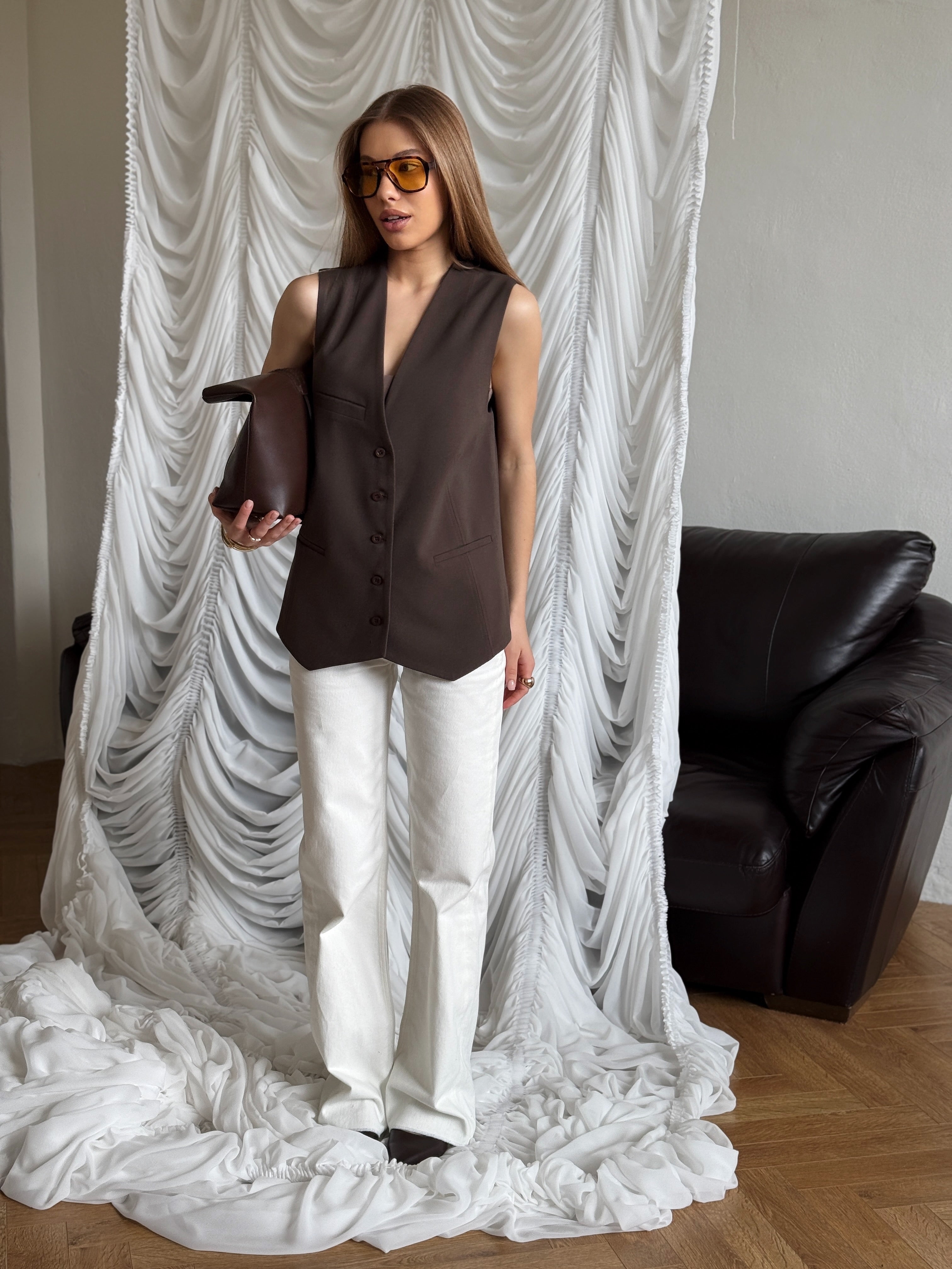 Damska kamizelka Minerva — stylowy i uniwersalny element podstawowej garderoby. Dzięki minimalistycznemu wzornictwu i wygodnemu dopasowaniu idealnie sprawdzi się zarówno na co dzień, jak i w bardziej eleganckich stylizacjach. Łatwo ją zestawiać i dopasowywać, nadając nowoczesny akcent każdej stylizacji.