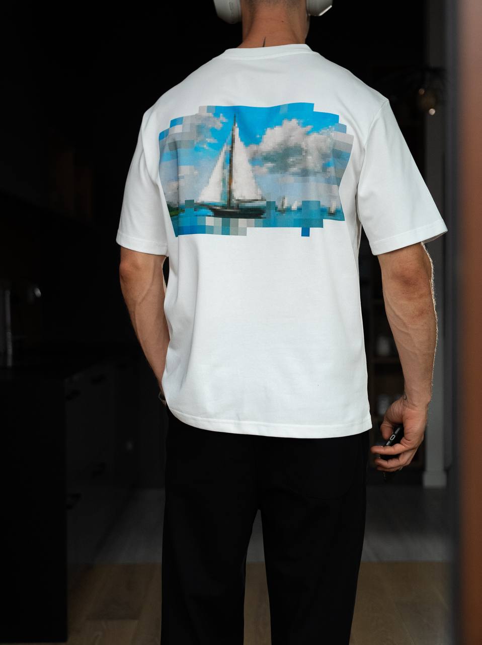 Męska luźna koszulka z nadrukiem pikselowym — wygoda i styl w każdym pikselu.
