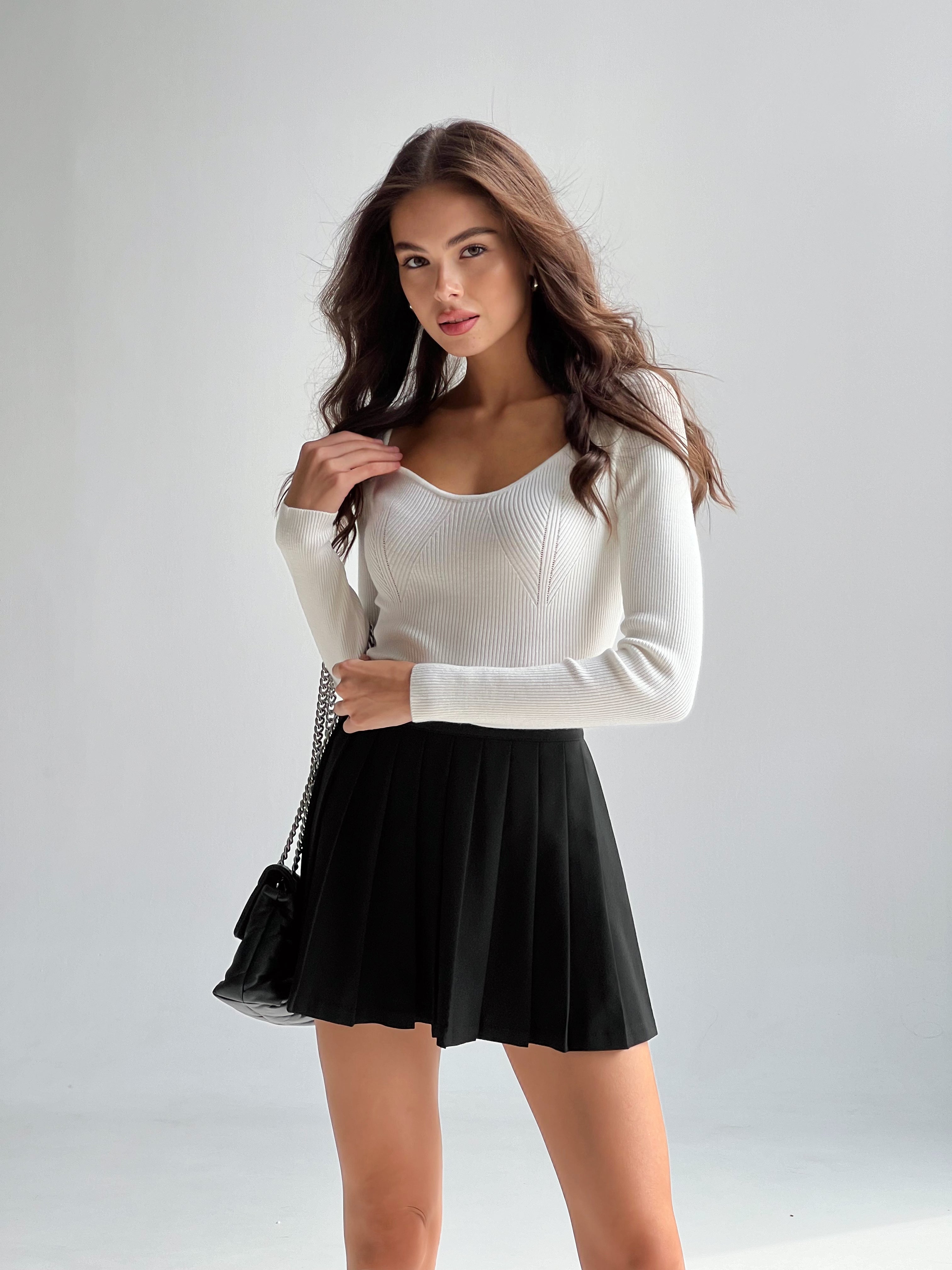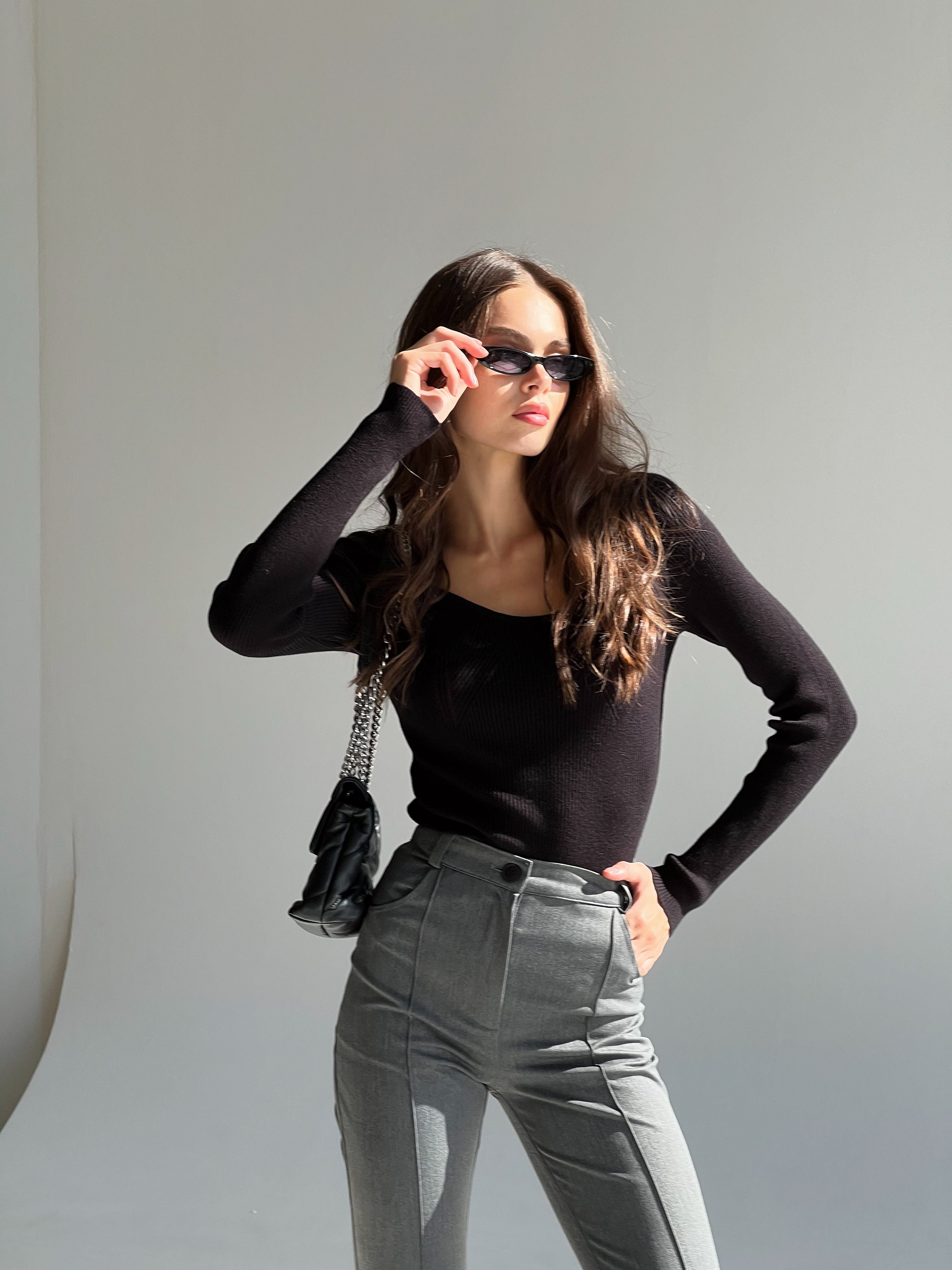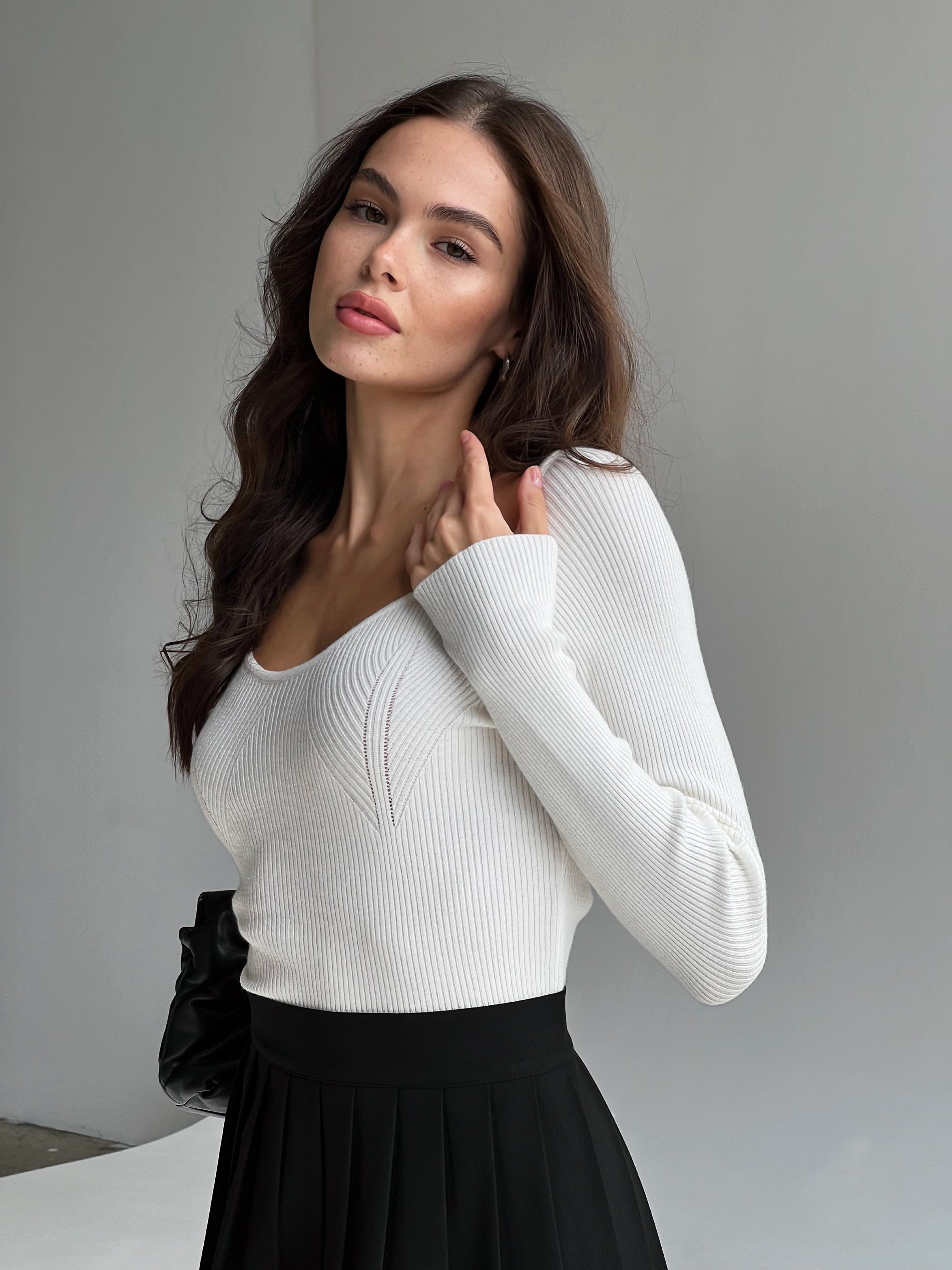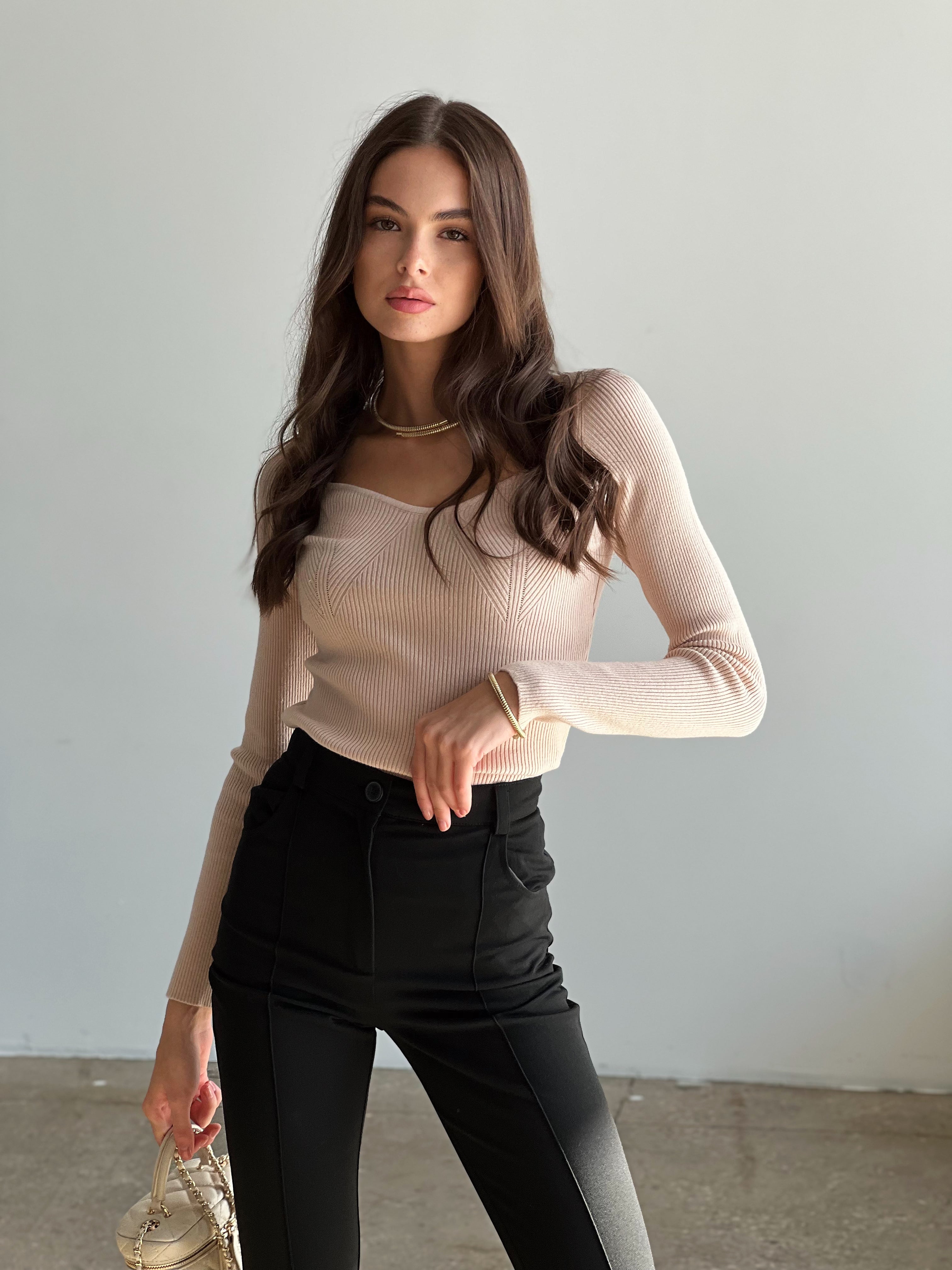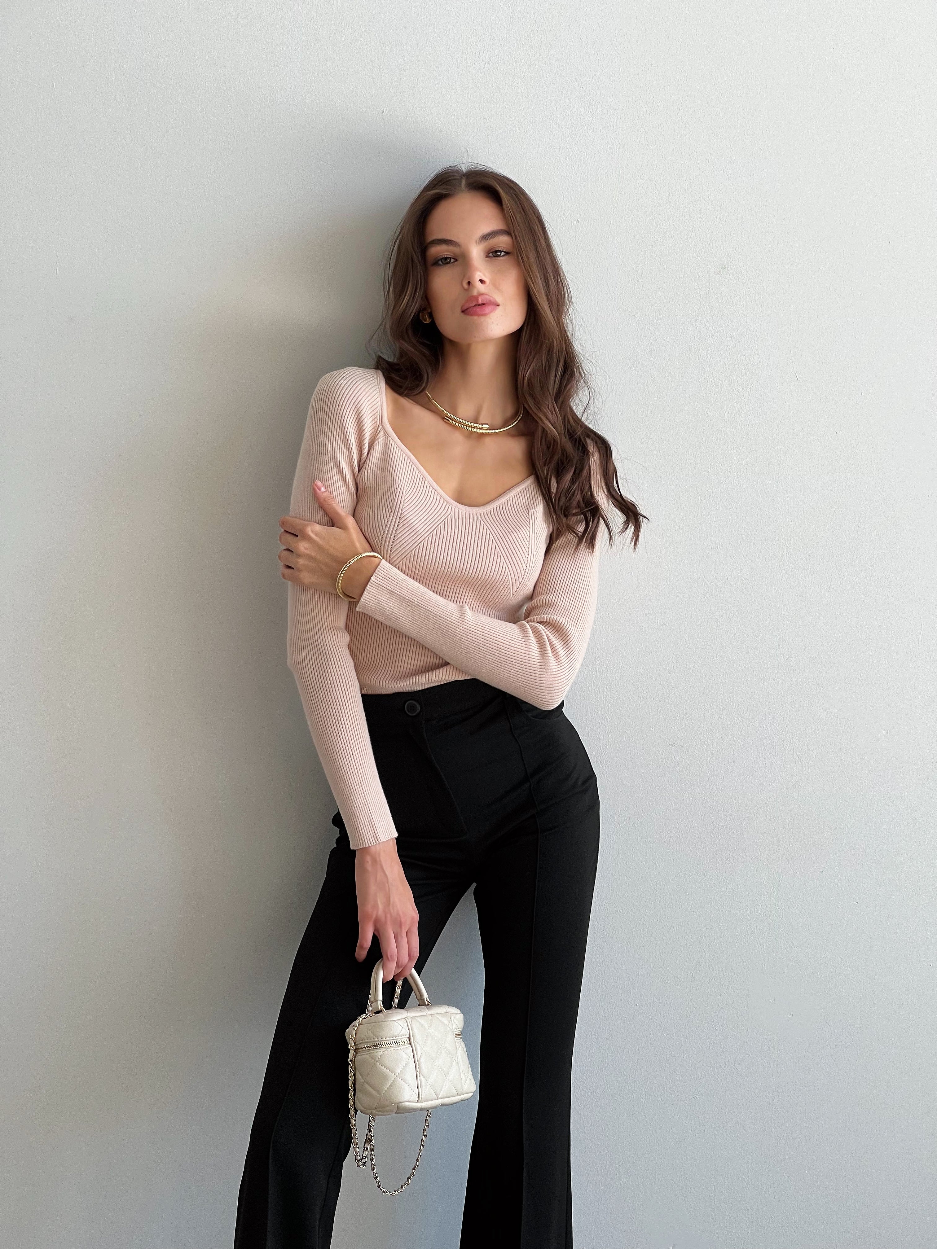 Prążkowany sweter – podstawowy i niezwykle wygodny element garderoby. Luźny krój zapewnia pełną swobodę ruchów, a naturalne materiały gwarantują wysoką jakość i trwałość. Sweter doda Twojej stylizacji kobiecości, podkreślając atuty i subtelnie ukrywając niedoskonałości.