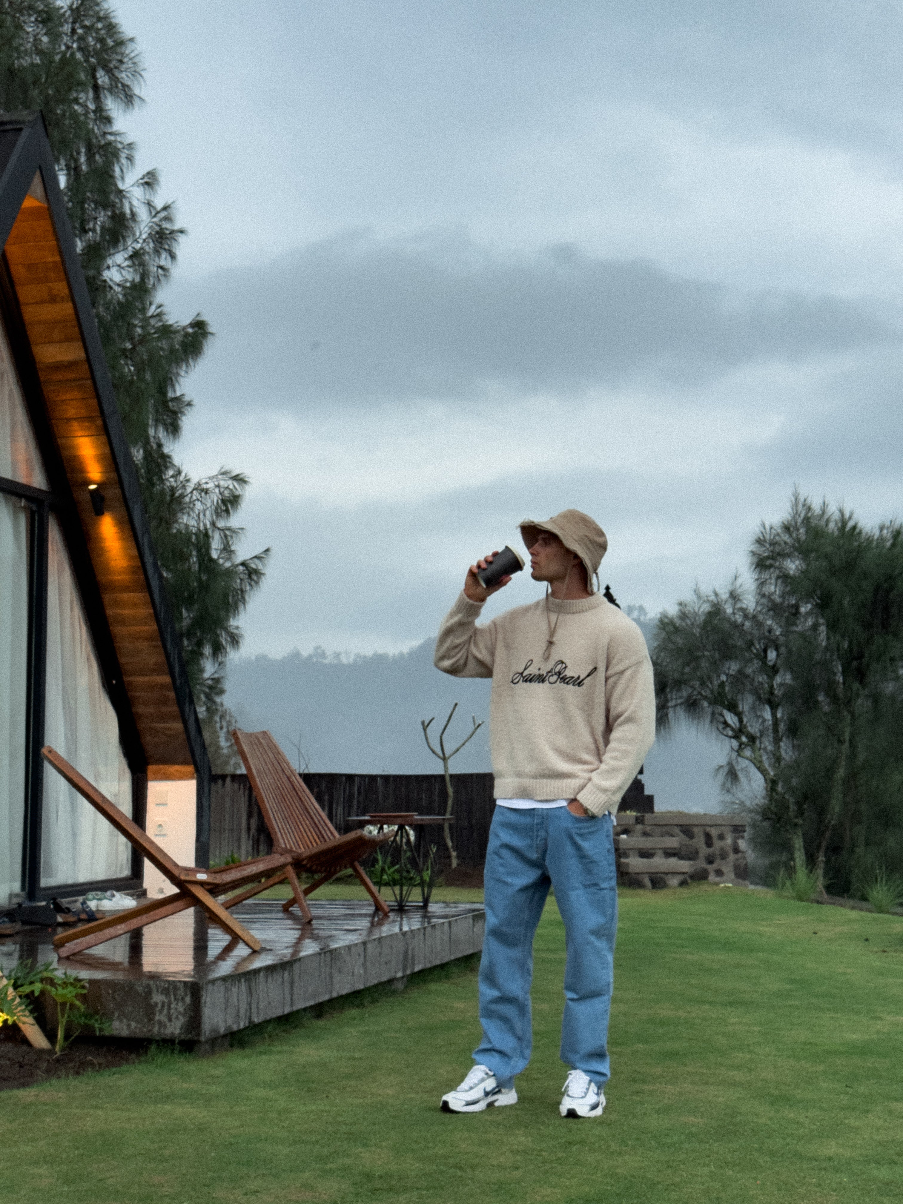 - Luźny, oversize'owy krój