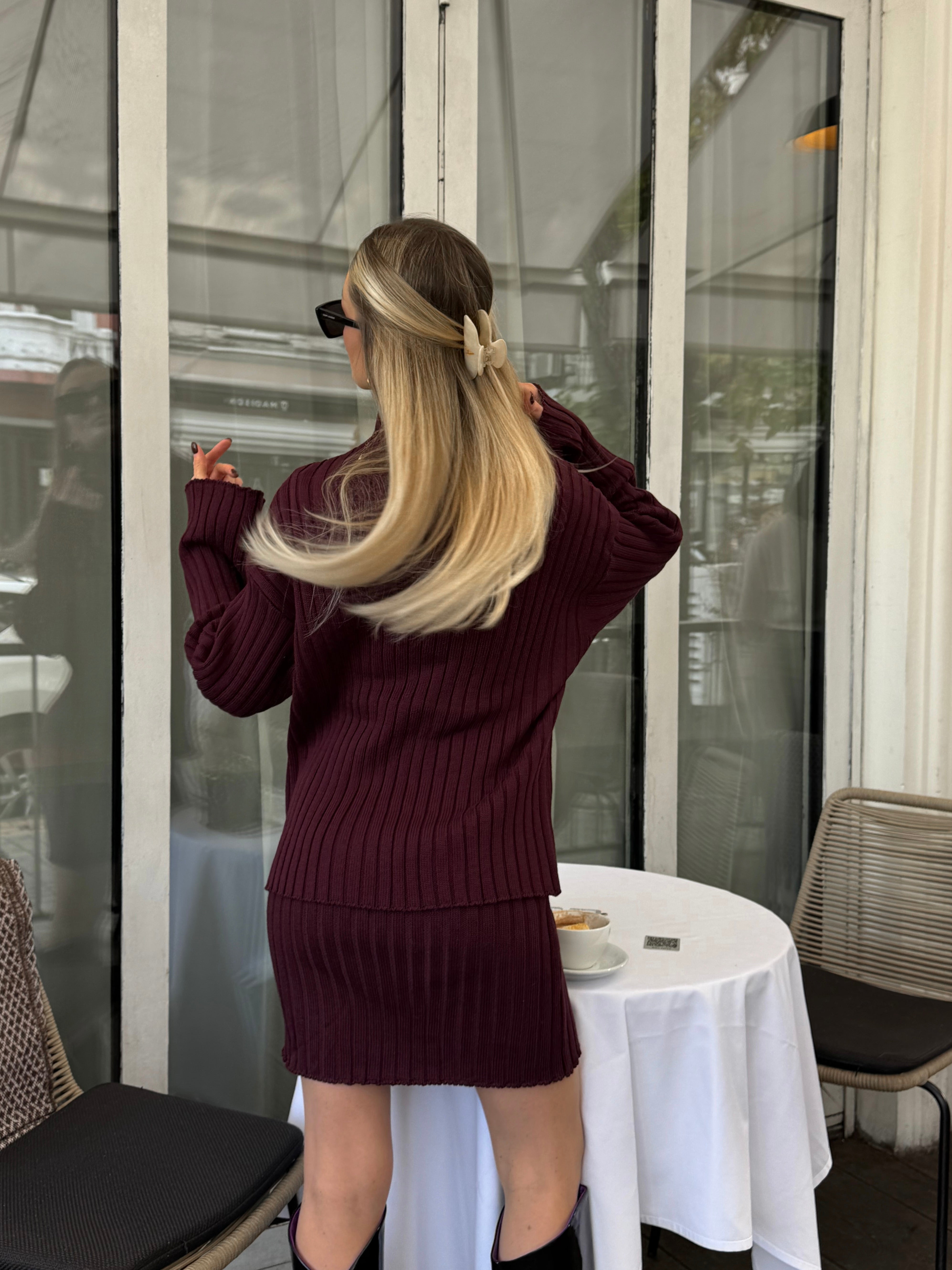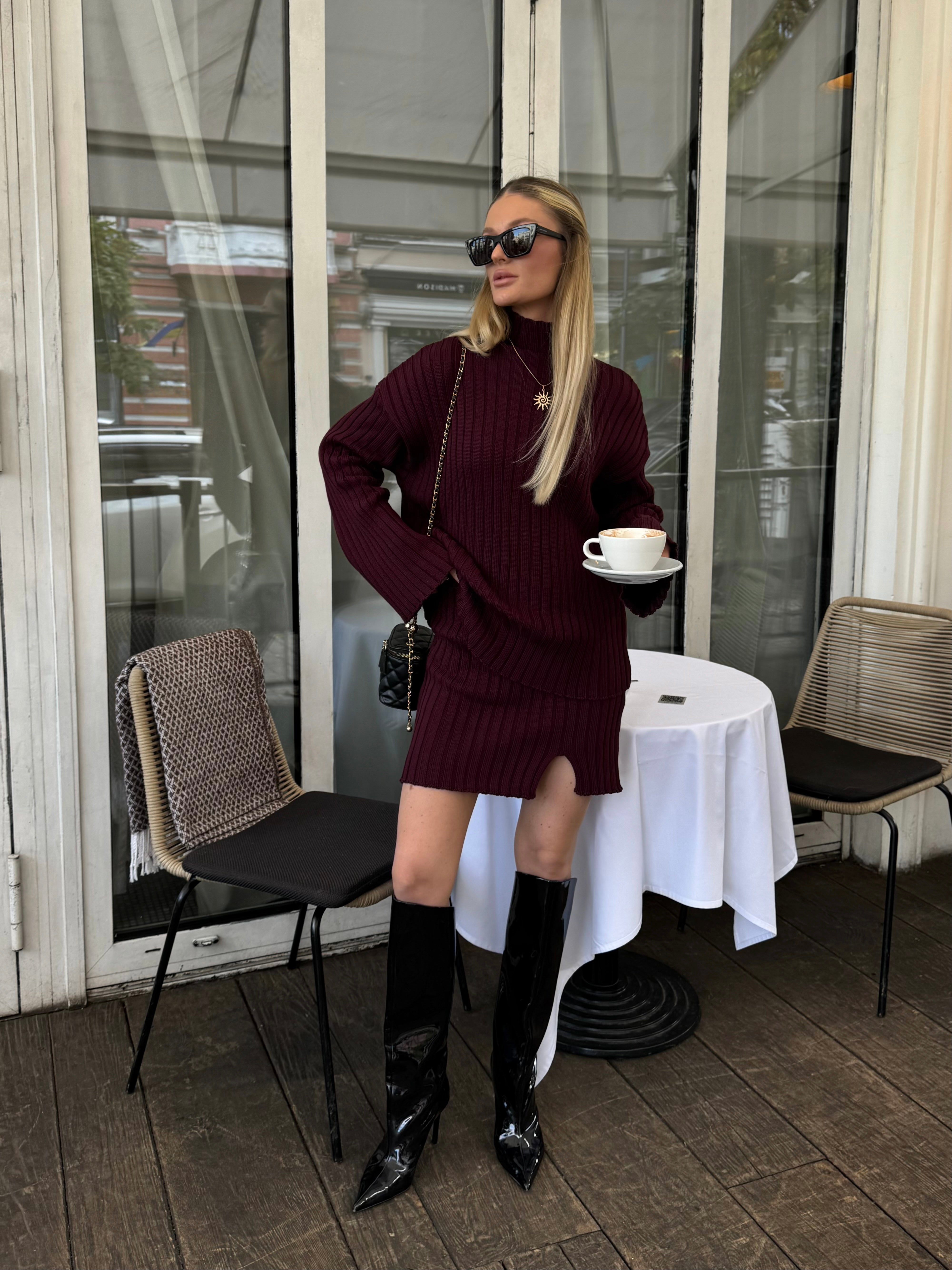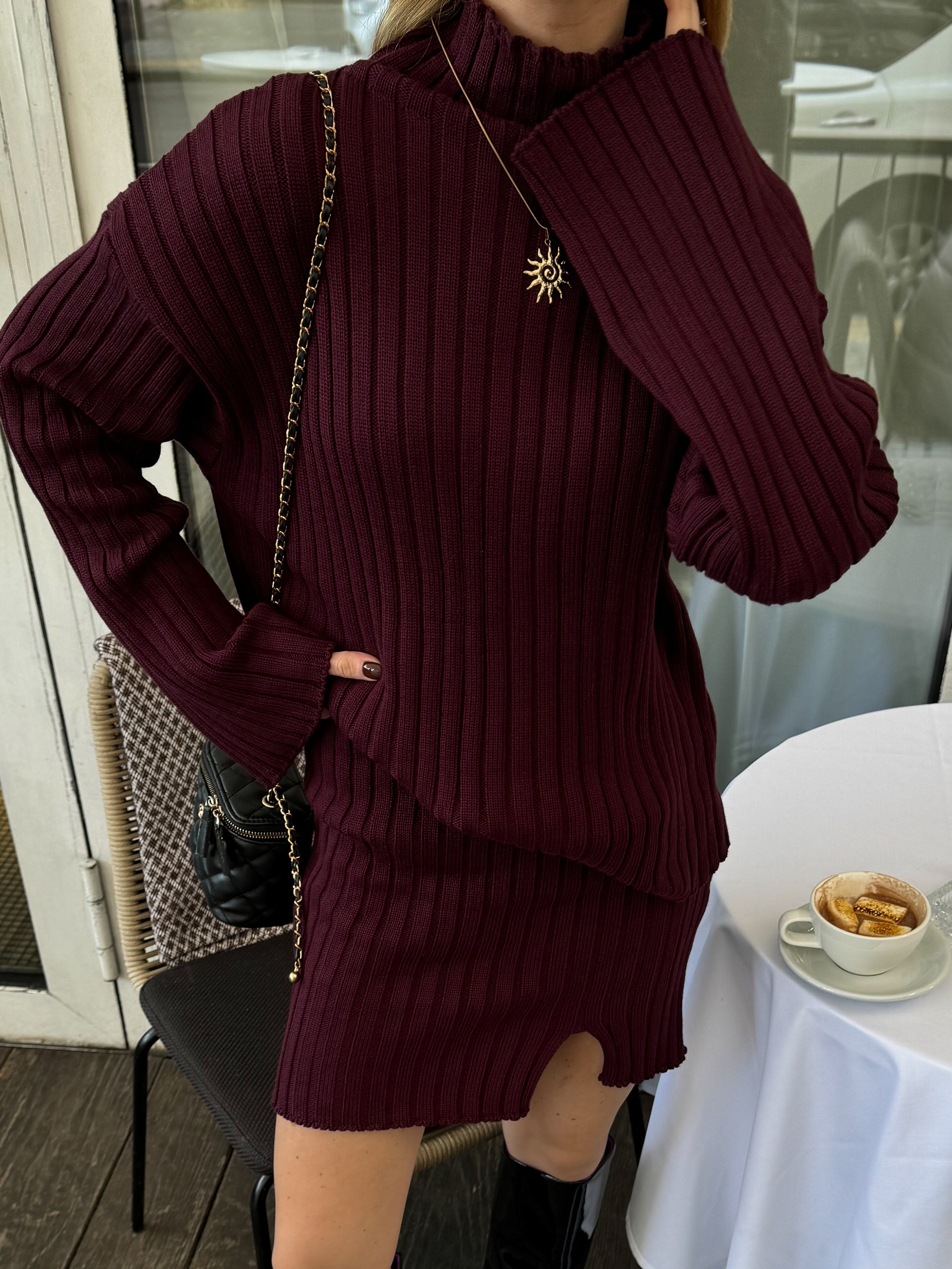 Komplet sweterka i spódnicy wykonany z miękkiej dzianiny to idealny wybór na chłodniejsze dni. Połączenie tych elementów tworzy modny i kobiecy look, dodając mu głębi i wyrazistości.