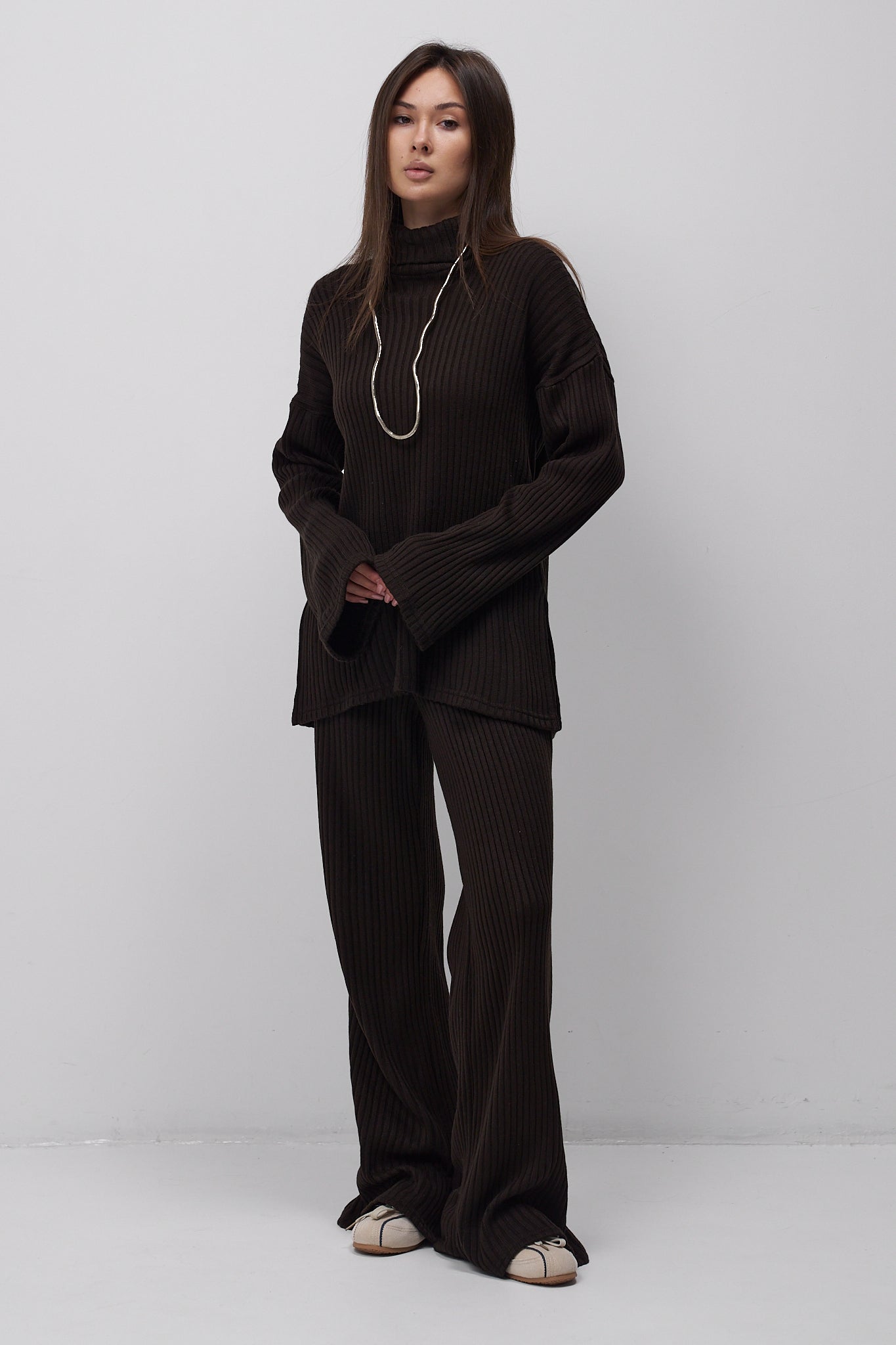 Długi, oversize'owy sweter Sili to idealne połączenie stylu i przytulności. Jego luźny fason zapewnia wygodę i swobodę ruchów, a wydłużony krój zapewnia ciepło nawet w najzimniejsze dni. Dzięki jednolitemu kolorowi sweter można łatwo łączyć z wyrazistymi dodatkami, tworząc niezliczone możliwości stylizacji.