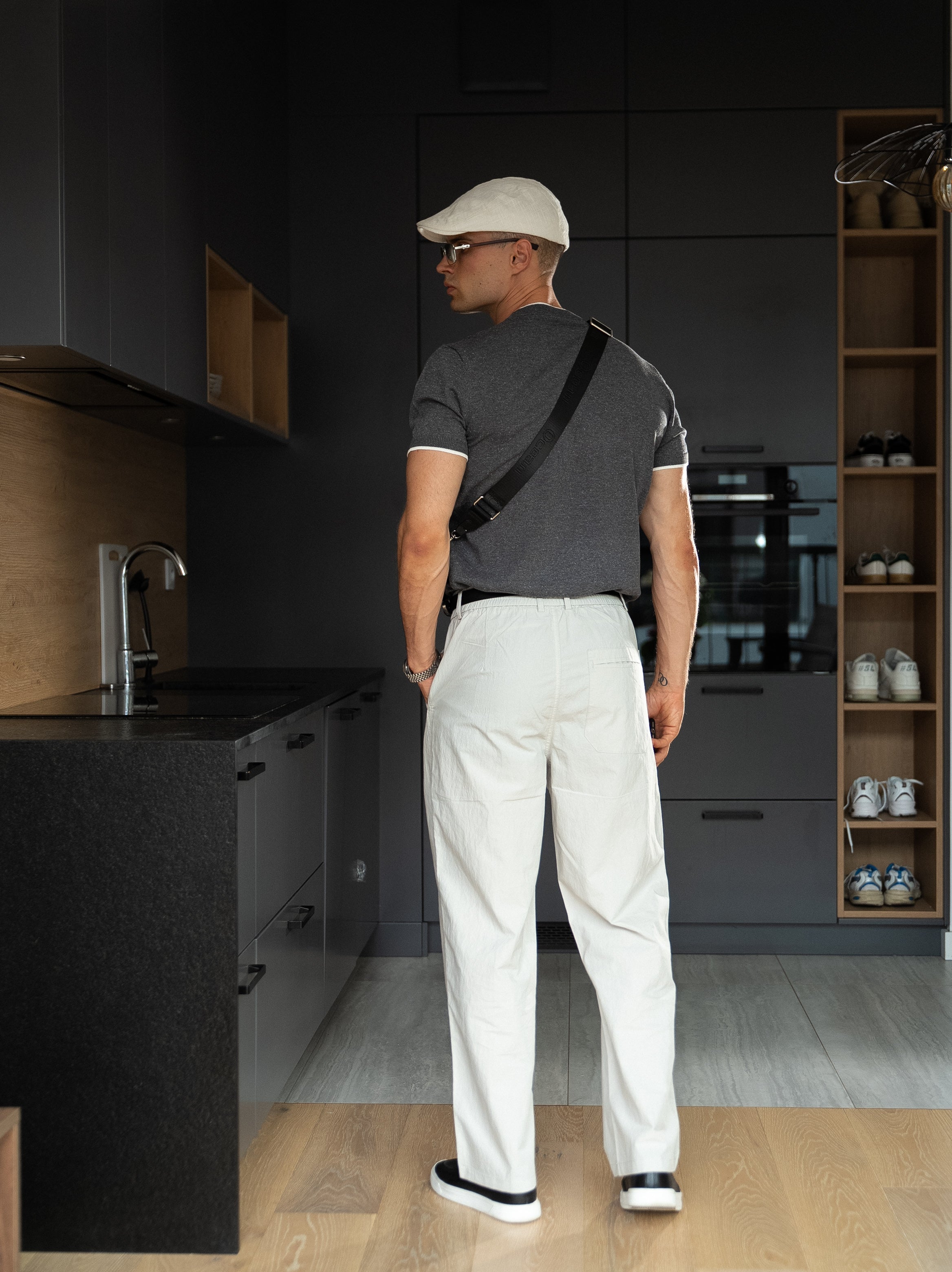 Spodnie Simba z elastyczną talią — wygodne i uniwersalne. Lekki materiał, elastyczny pas i luźny krój sprawiają, że są zarówno praktyczne, jak i stylowe.