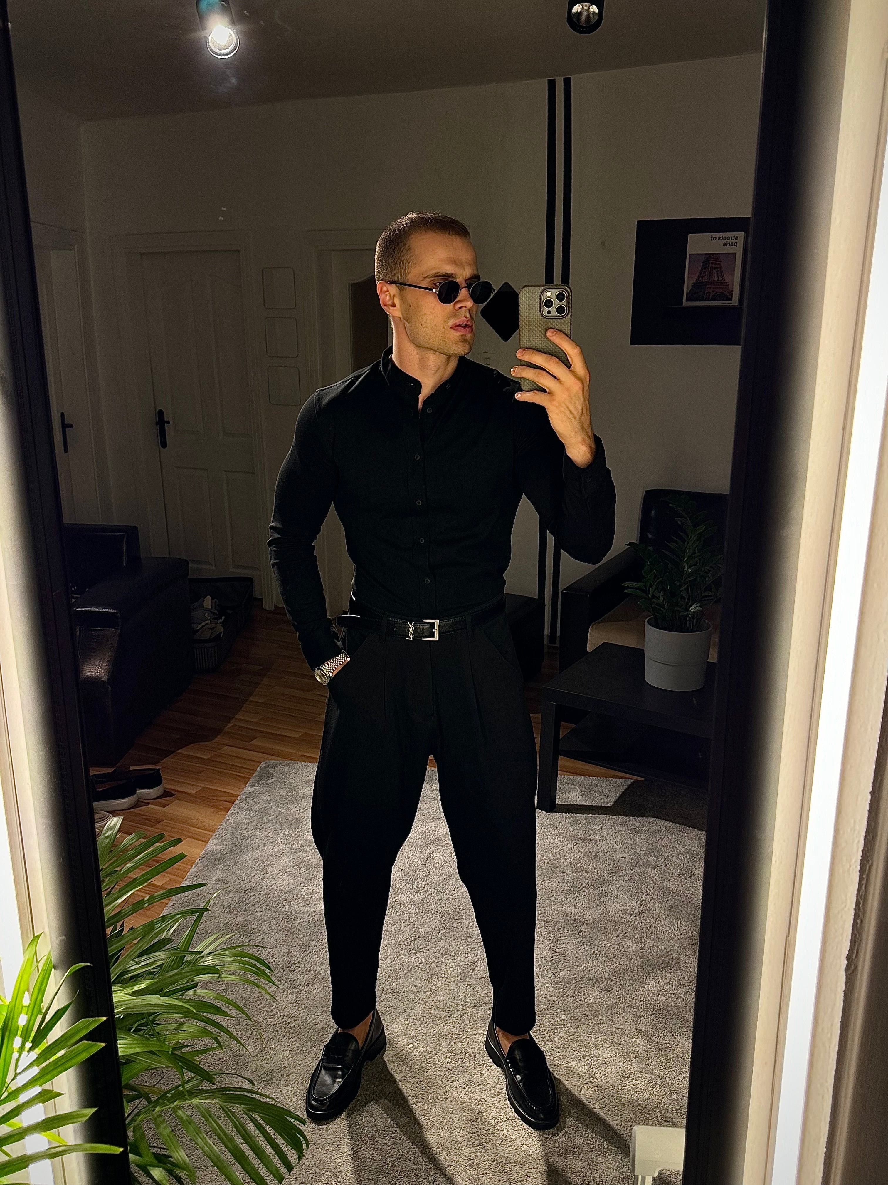 - Dopasowany krój, który idealnie podkreśla męską sylwetkę