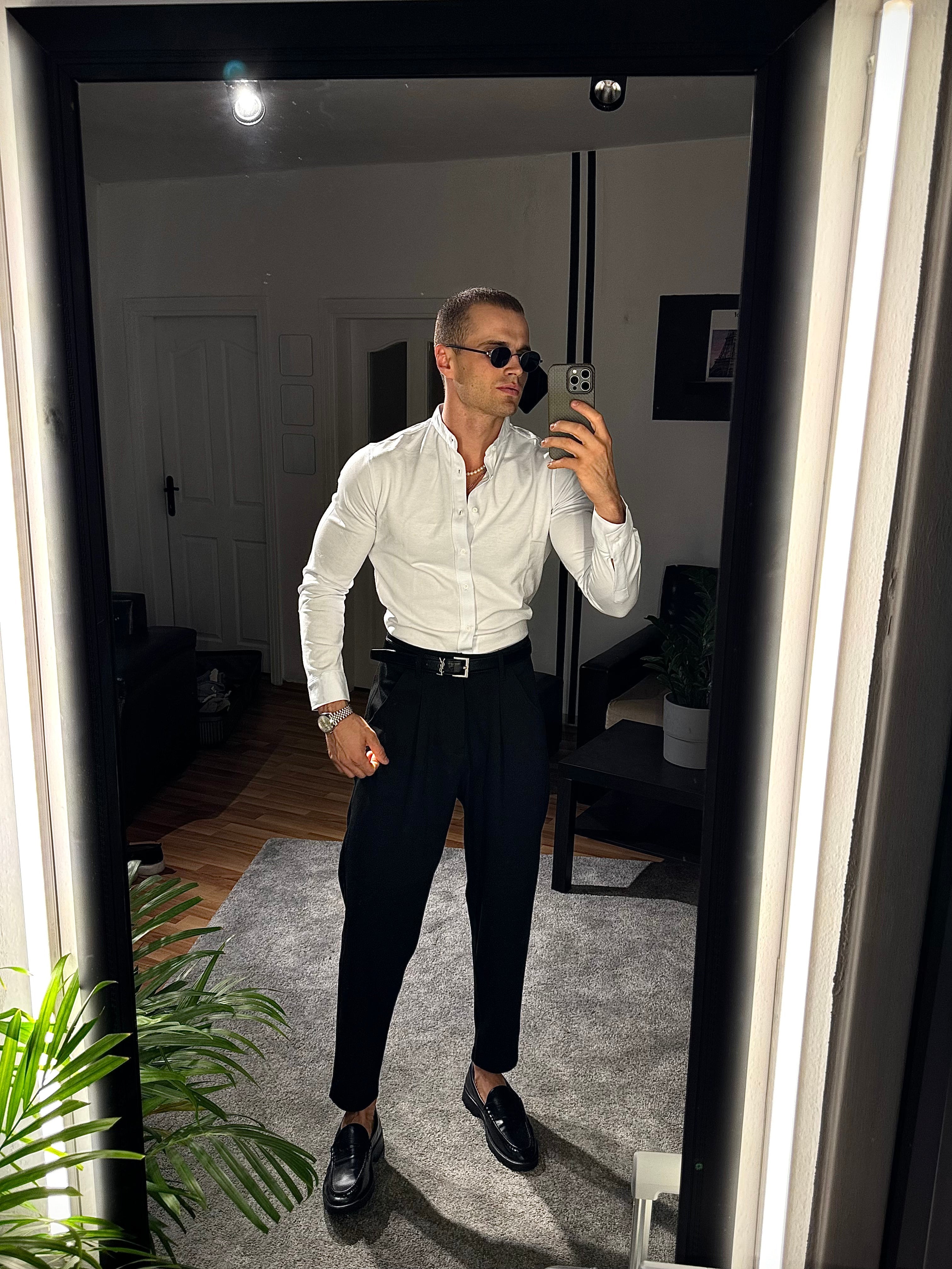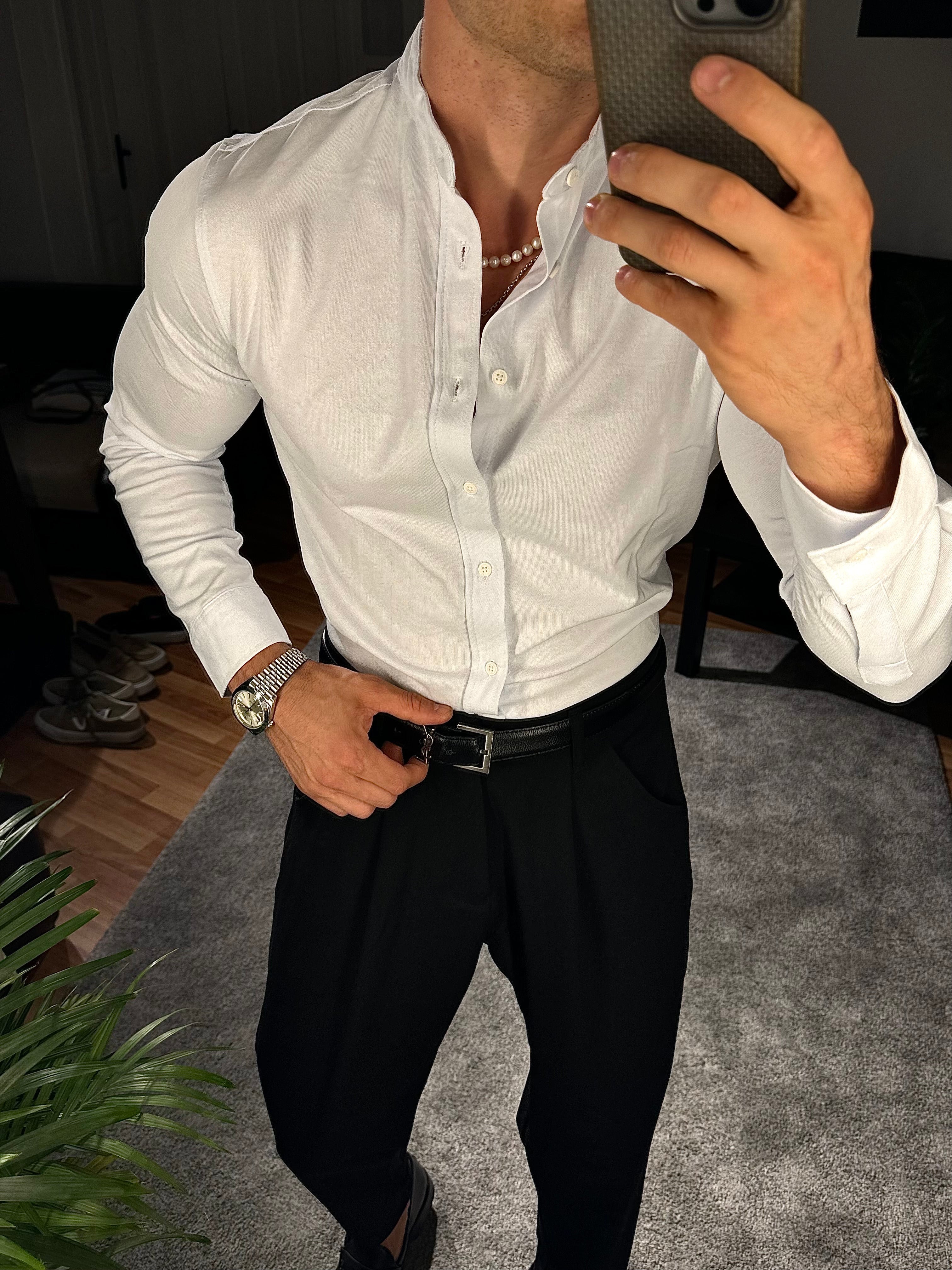 Podstawowa koszula ze stójką jest podstawą zarówno stylizacji biznesowych, jak i codziennych.