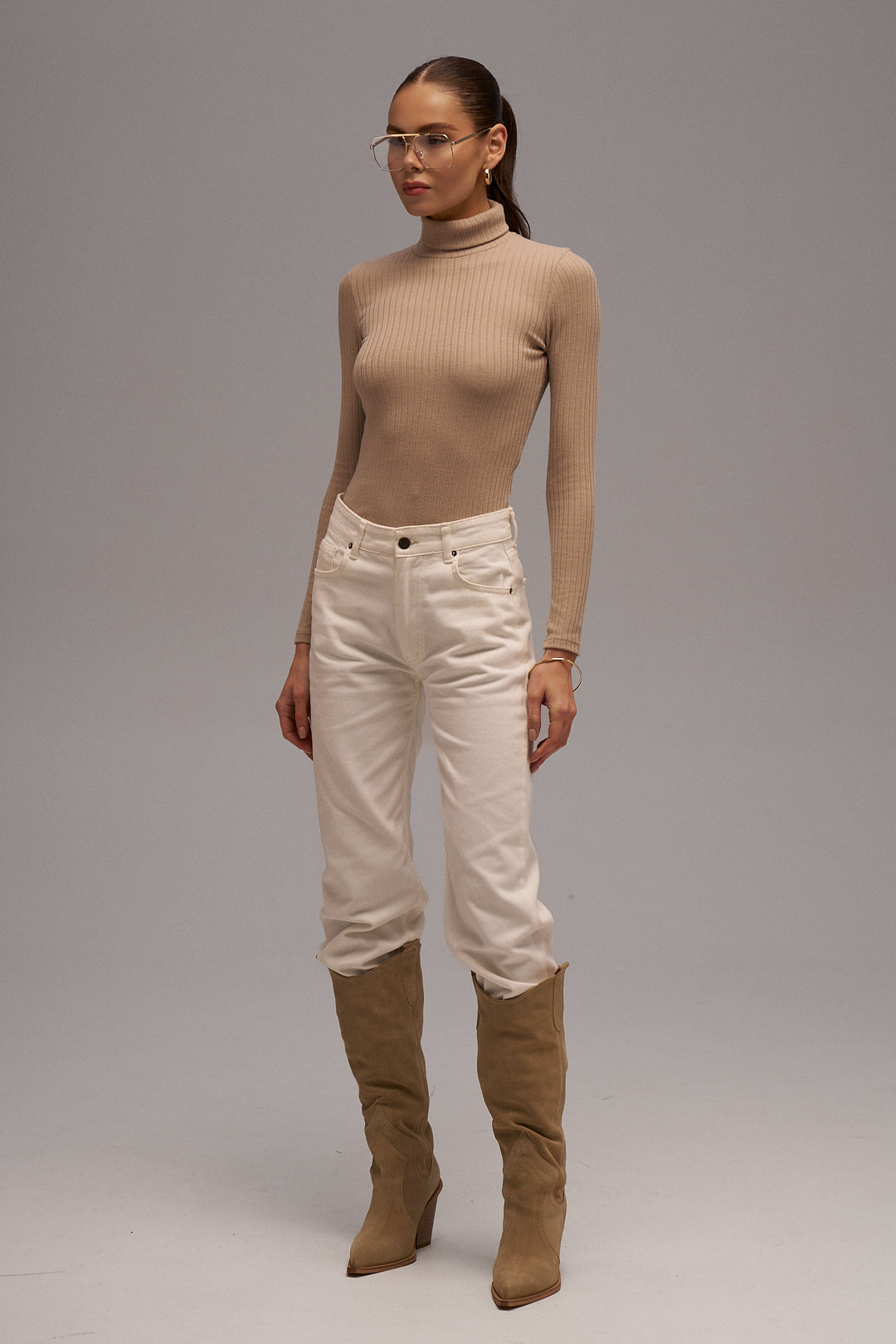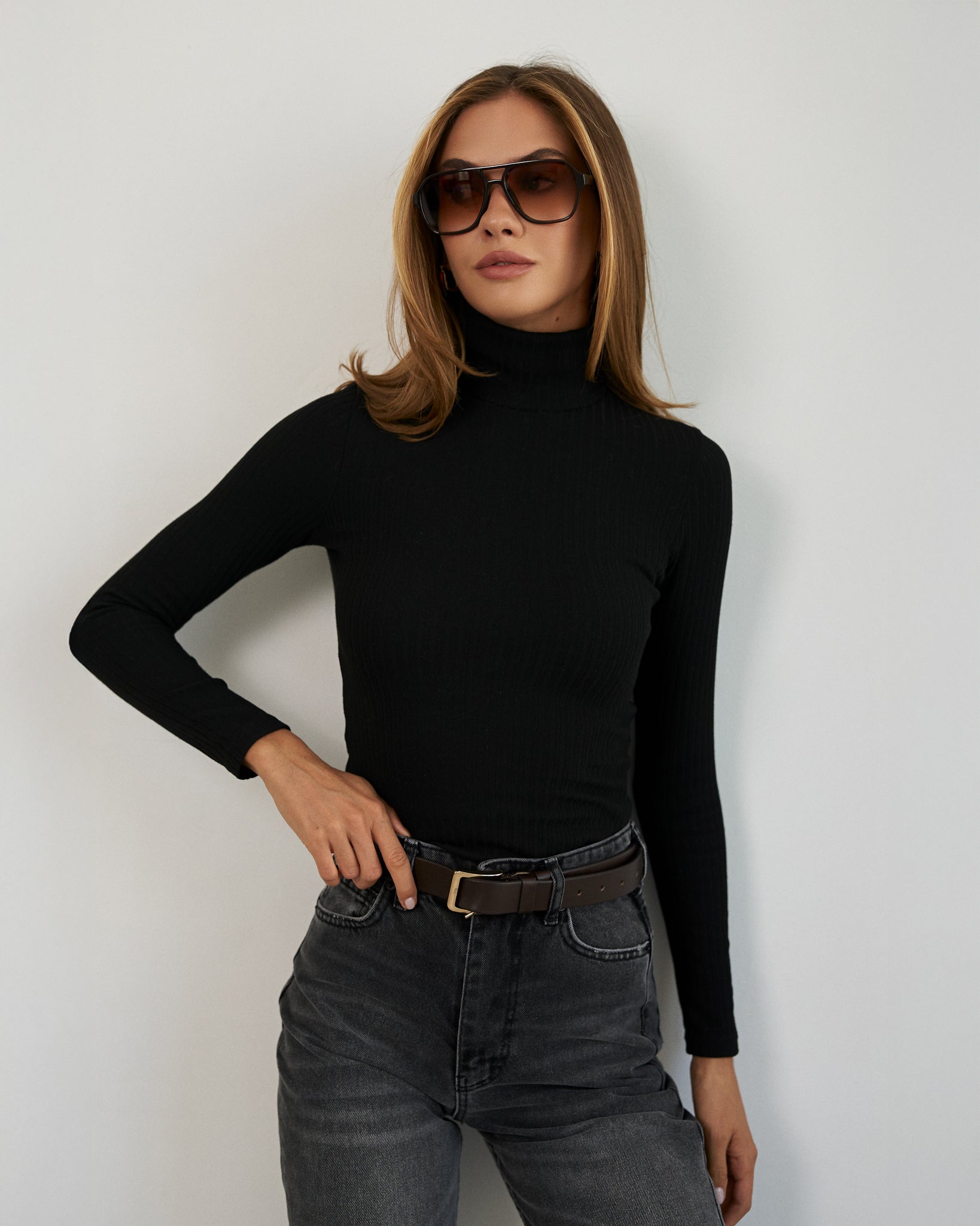 Prążkowany golf – stylowy i wygodny element garderoby. Elastyczny materiał podkreśla sylwetkę, zapewniając jednocześnie całodzienny komfort. Dzięki uniwersalnemu fasonowi idealnie pasuje zarówno do swobodnych, jak i bardziej formalnych stylizacji.
