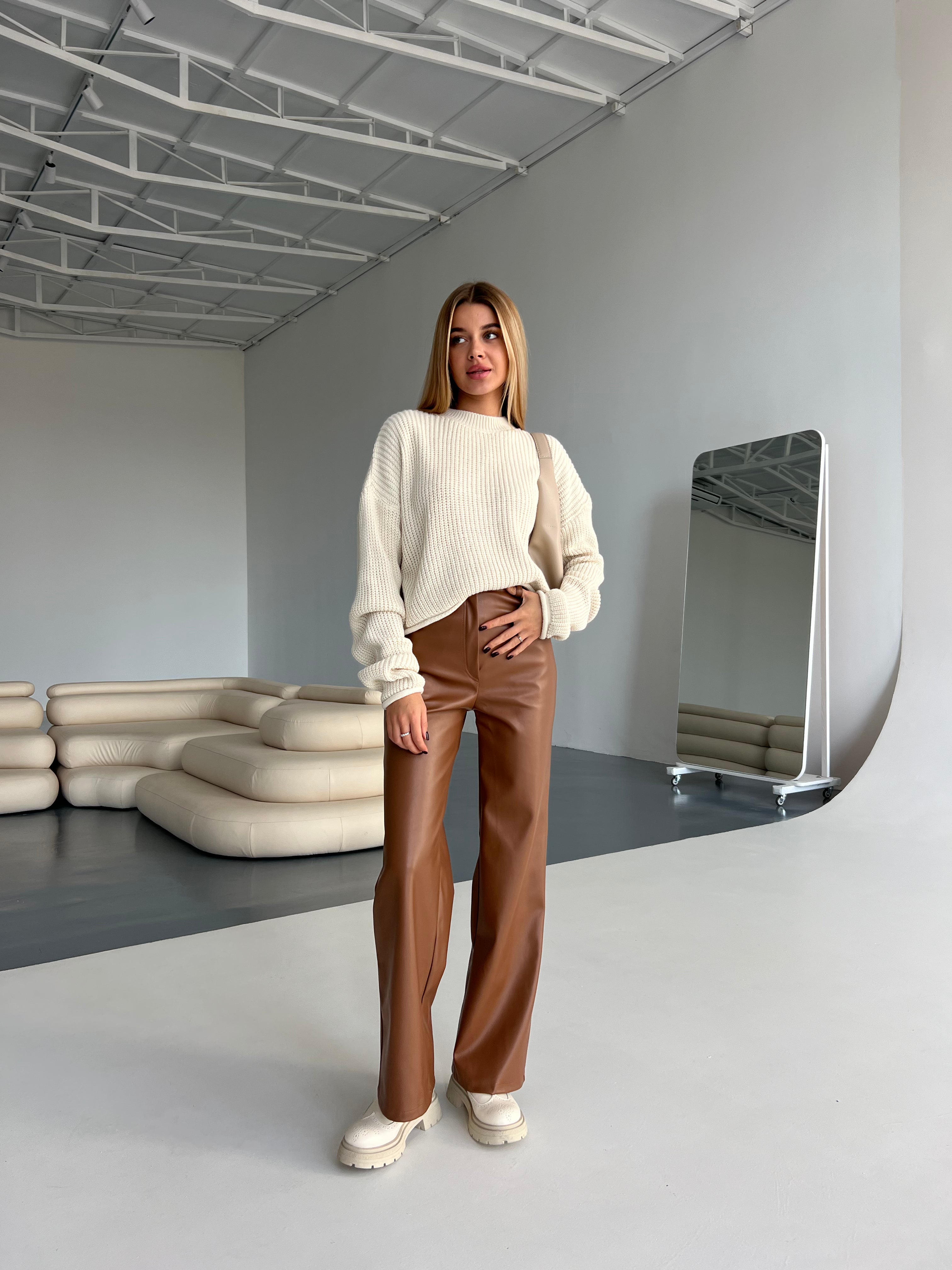 Szerokie spodnie ze sztucznej skóry to stylowy i uniwersalny element garderoby, który łączy wygodę z nowoczesnym wzornictwem. Wysoki stan optycznie wydłuża nogi i podkreśla talię, a miękka sztuczna skóra zapewnia przyjemny dotyk. Ten fason pasuje do każdego stylu – od casualowego po elegancki.