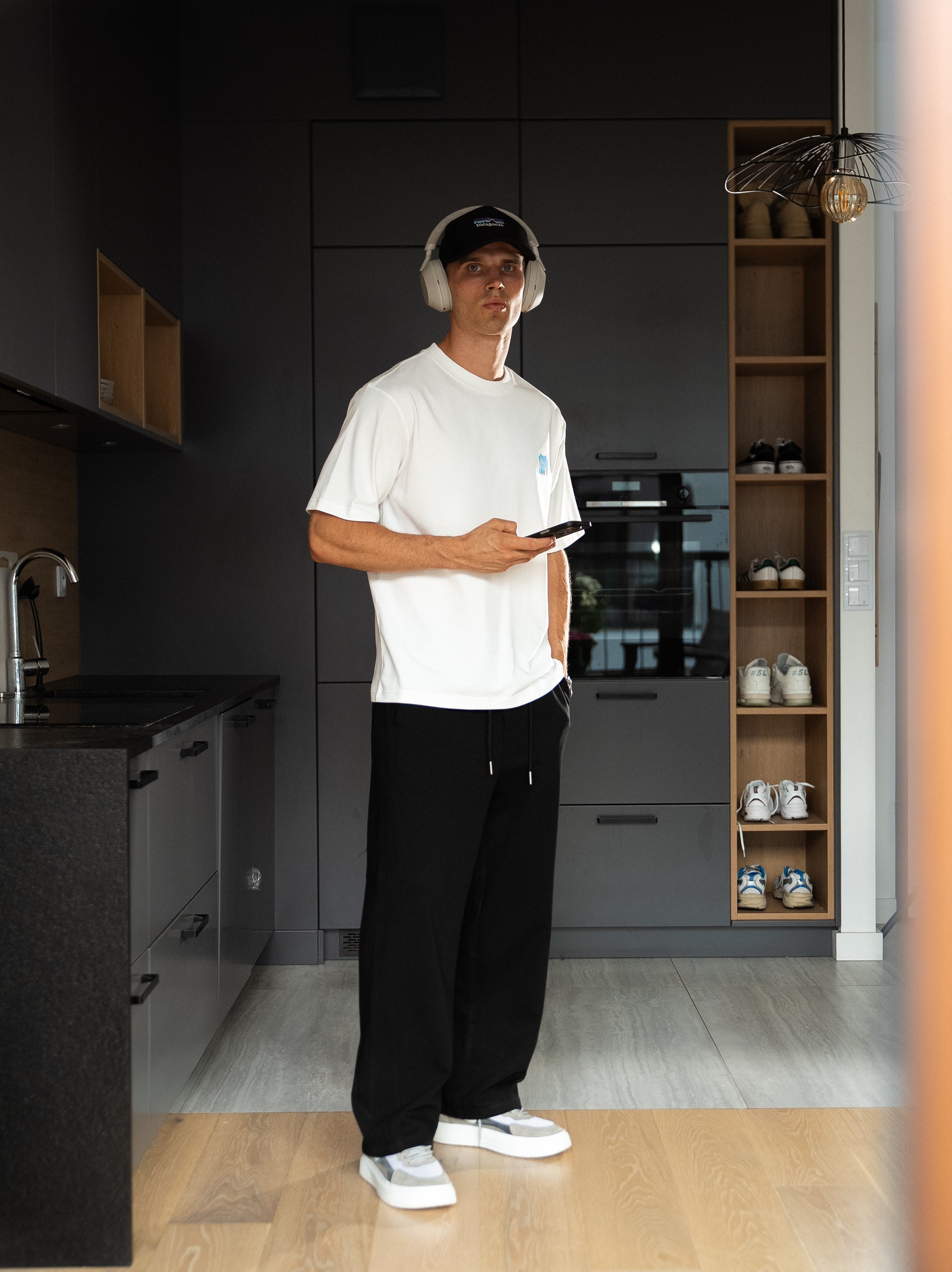 Szerokie, elastyczne chinosy męskie – nowoczesna interpretacja klasycznych spodni o luźnym kroju i z elastycznego materiału. Zapewniają maksymalny komfort i swobodę ruchów, pasują zarówno do casualowych stylizacji, jak i bardziej stylowych stylizacji.